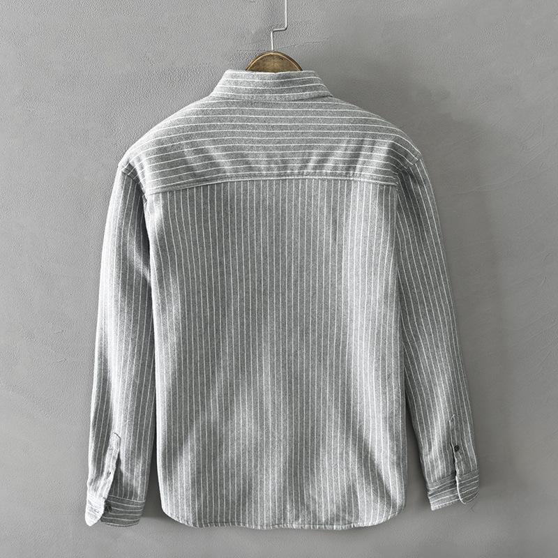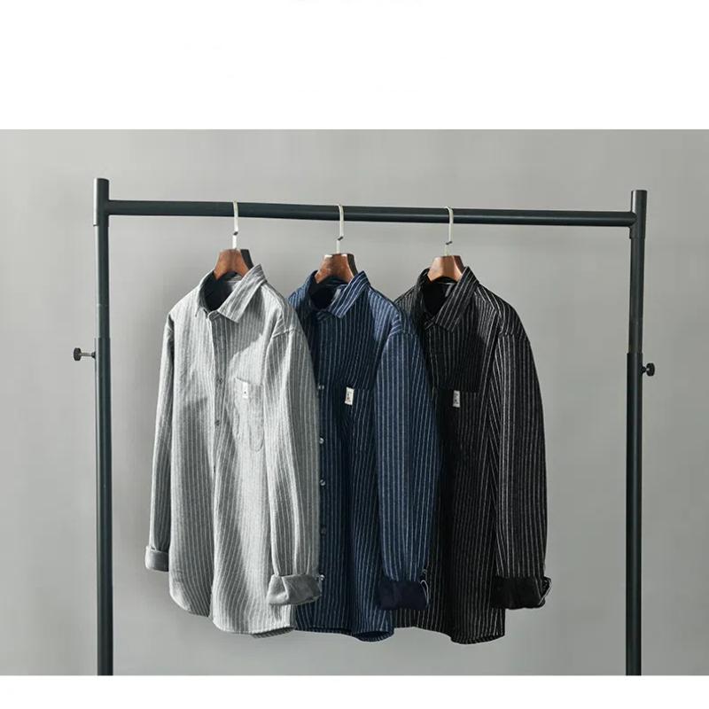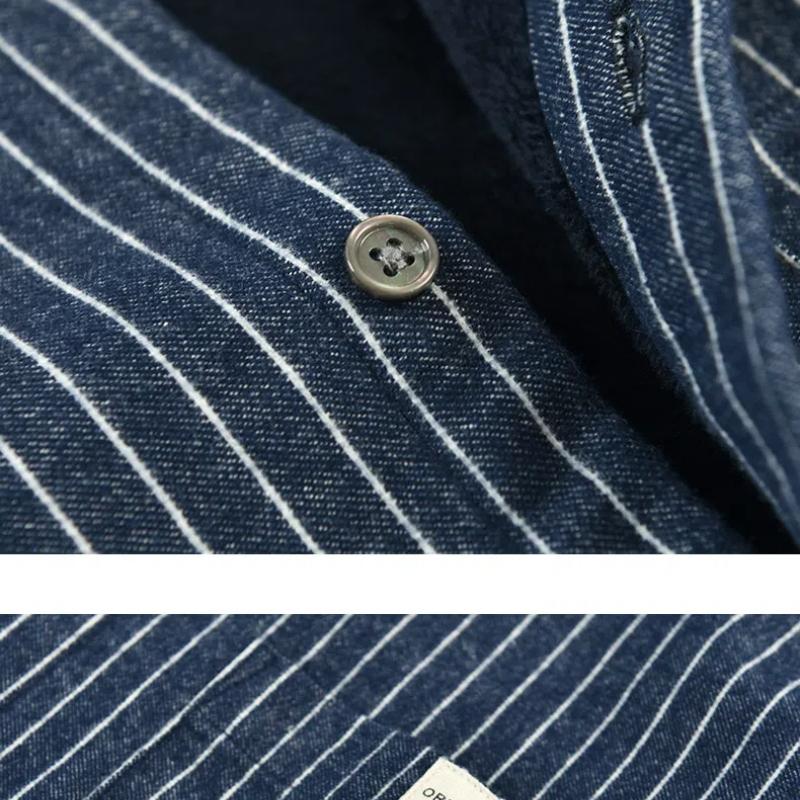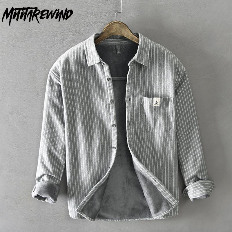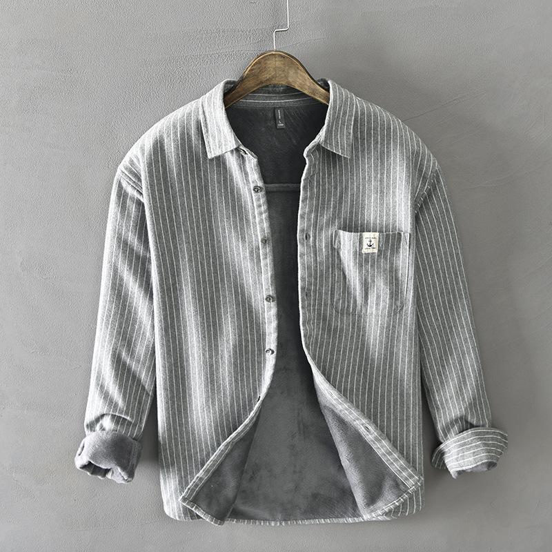 Зимняя теплая мужская рубашка, повседневная, мужская, повседневная, корейский стиль, полосатая флисовая рубашка с воротником-лацканами, на пуговицах
