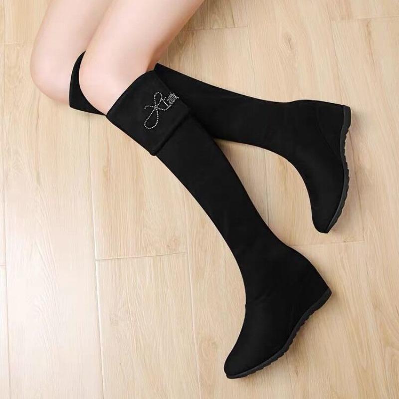 Обувь для женщин зимняя обувь до колена с высоким голенищем длинные эластичные женские сапоги на танкетке со стразами по акции шикарные элегантные сапоги Y2k — купить товар онлайн с бесплатной доставкой по всему миру!