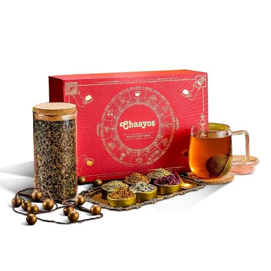 Chaayos Подарочные наборы Herbal Premium Diwali | Содержит зеленый чай с шестью натуральными ингредиентами и стальным ситечком для заваривания чая | Ароматизаторы - куркума, корица