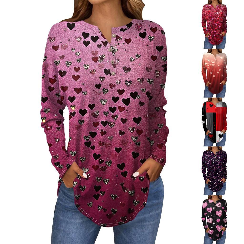 Женская мода свободный воротник на пуговицах с принтом длинный рукав футболка топы пуловер — купить товар онлайн с бесплатной доставкой по всему миру!