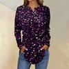 Женская мода свободный воротник на пуговицах с принтом длинный рукав футболка топы пуловер
