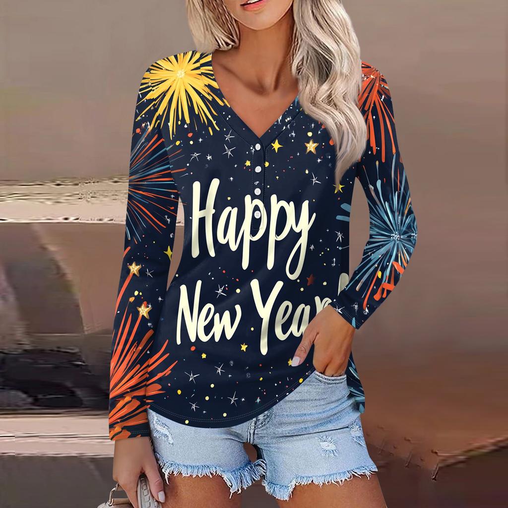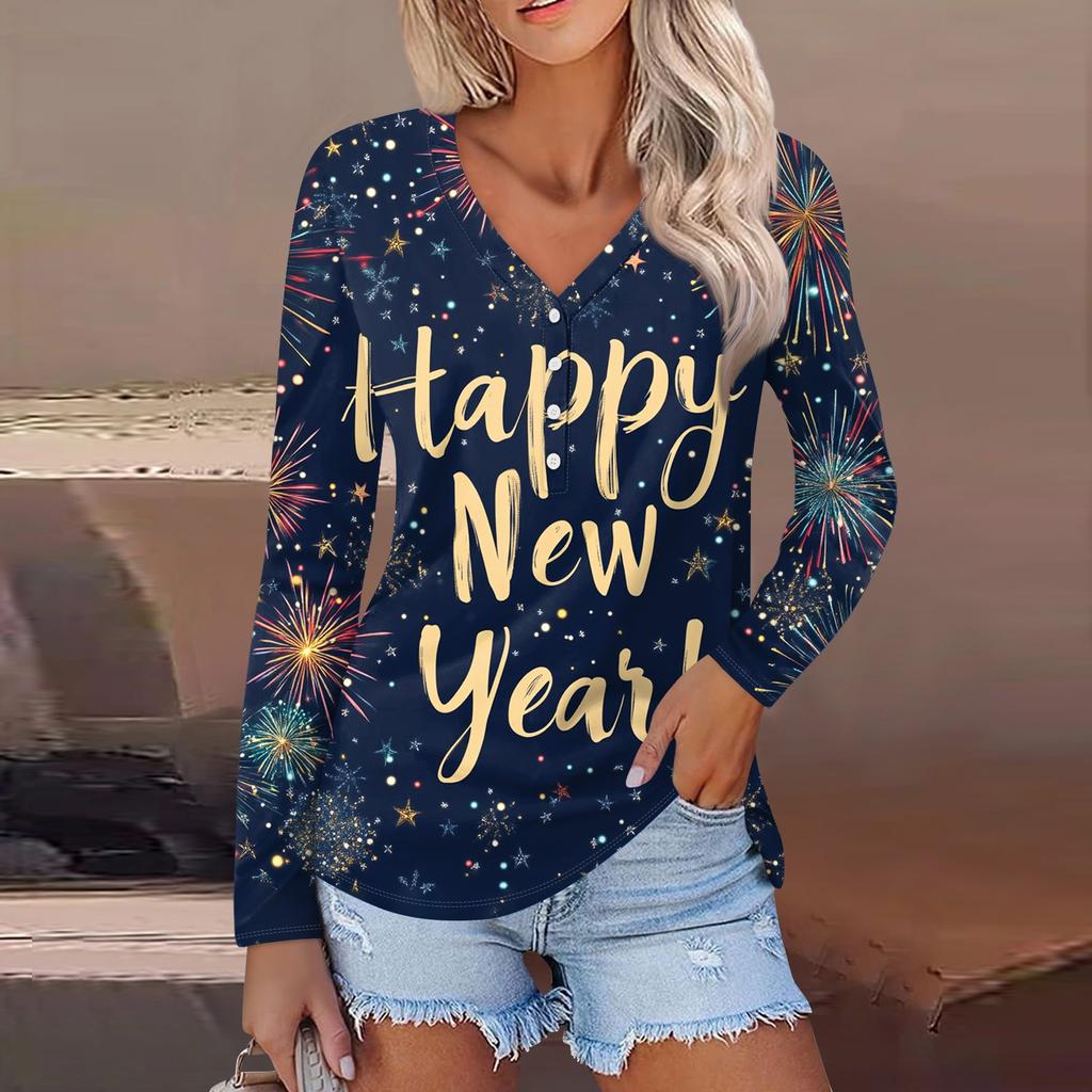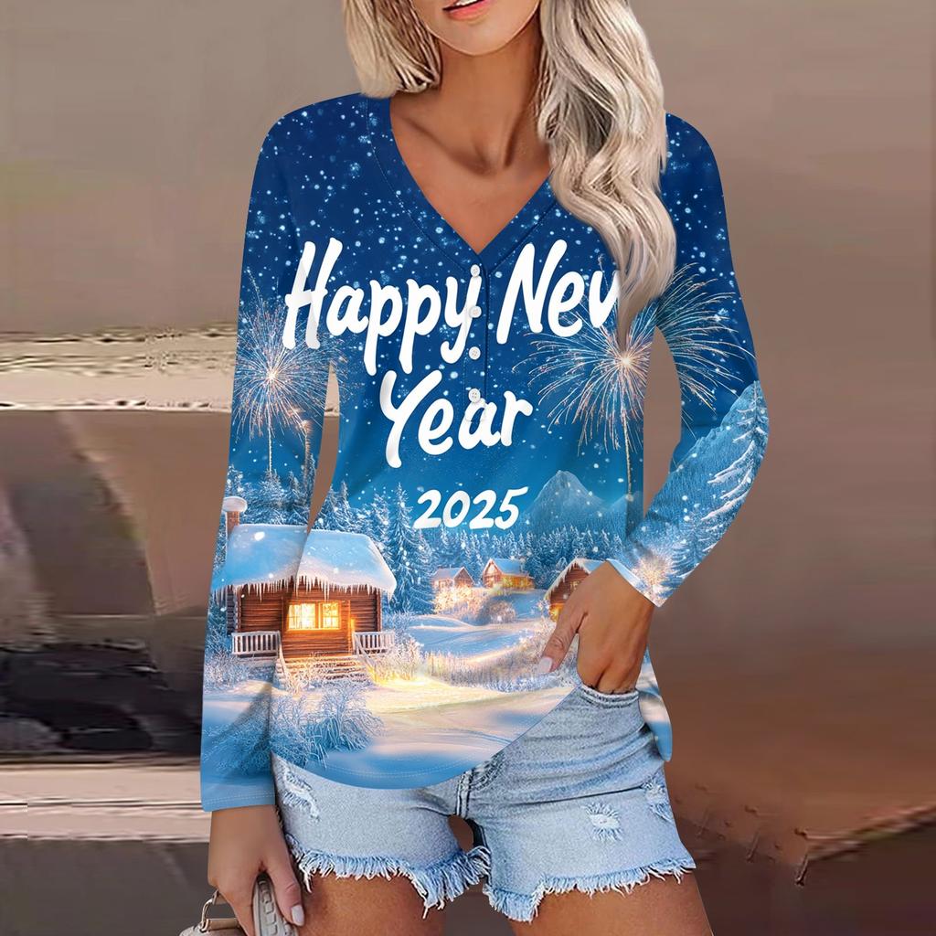 Женская повседневная мода сексуальный комфорт рождественский принт V-образный вырез пуговицы длинный рукав