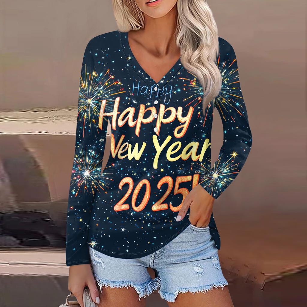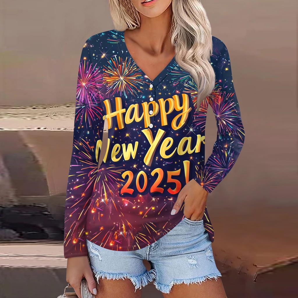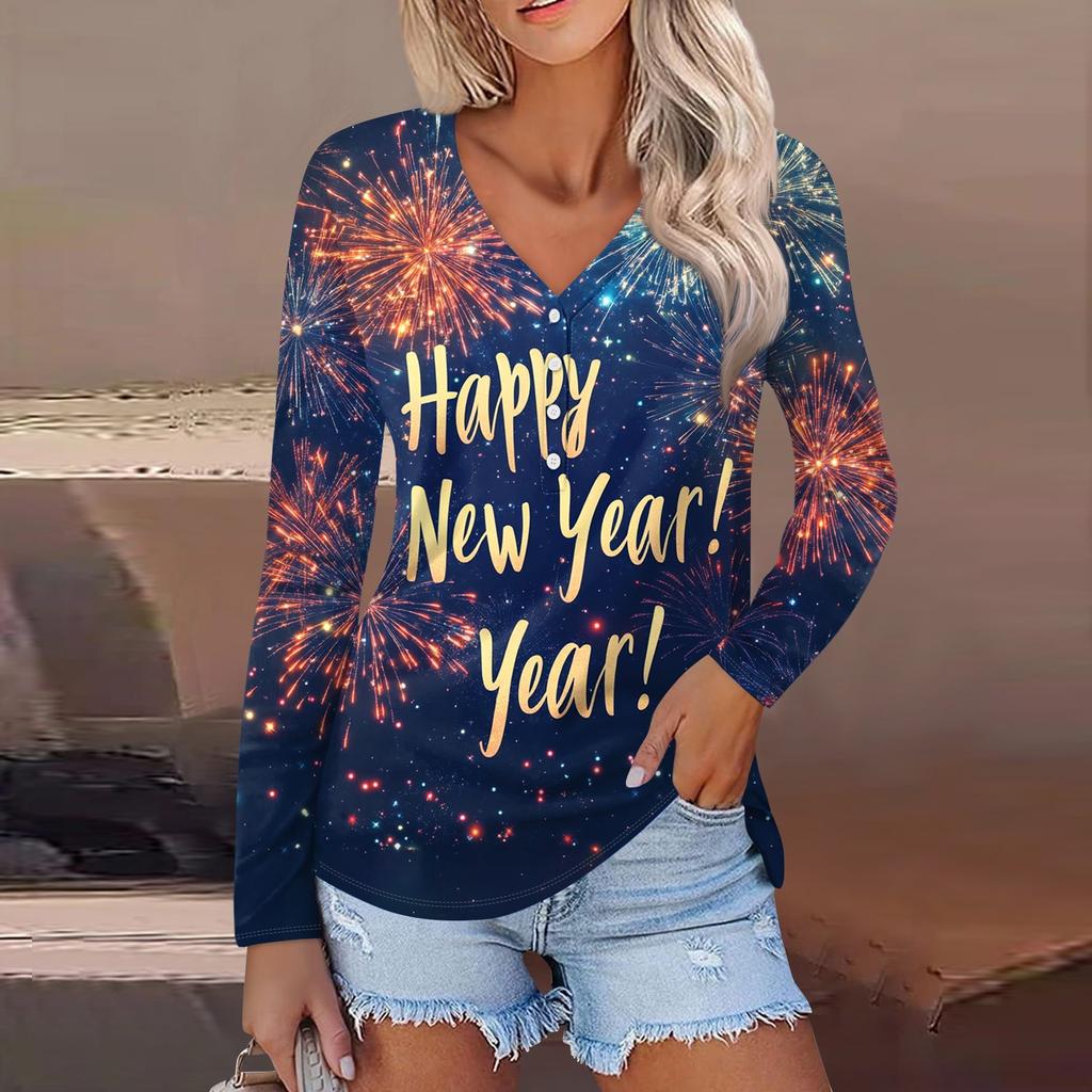 Женская повседневная мода сексуальный комфорт рождественский принт V-образный вырез пуговицы длинный рукав