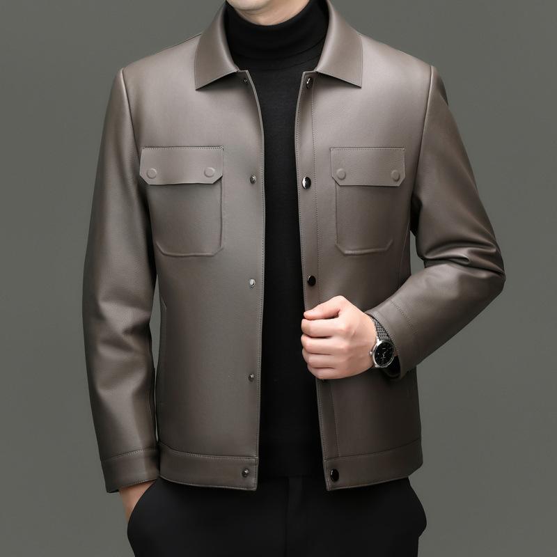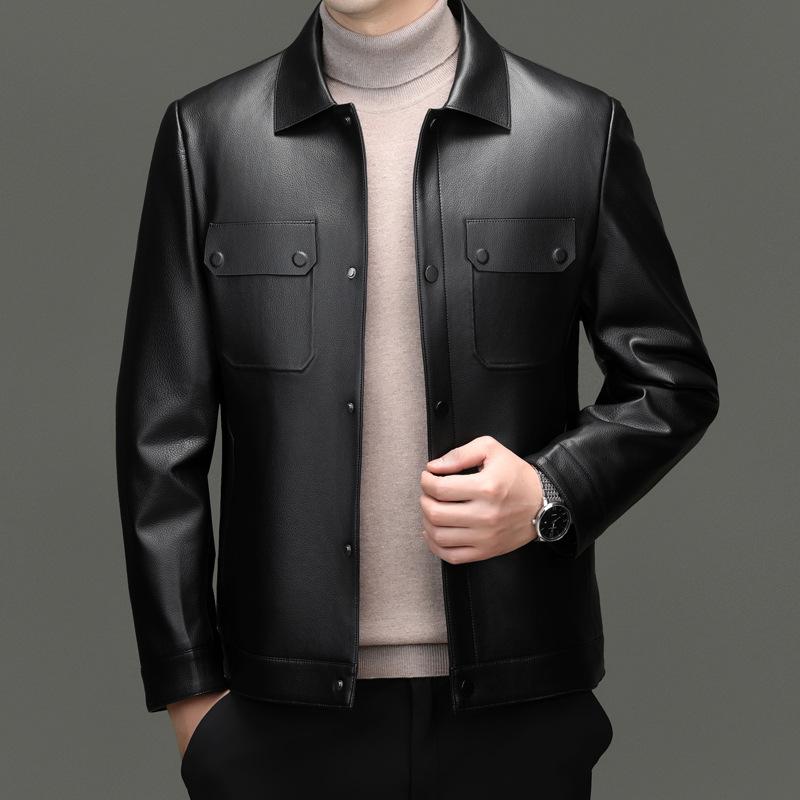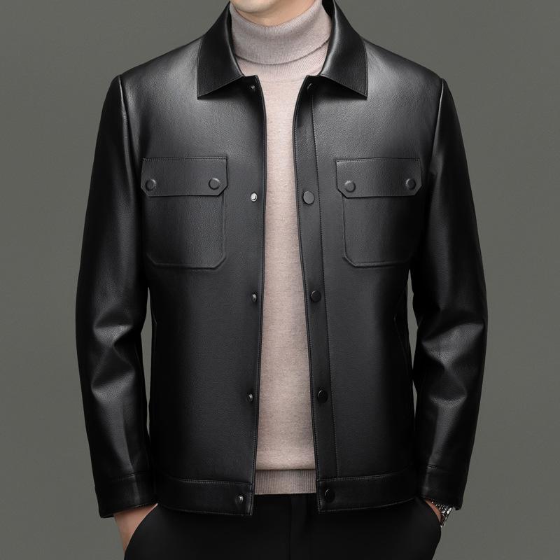 Пуховик мужской из натуральной кожи куртка мужское пальто большого размера короткая кожаная куртка для пап среднего и пожилого возраста утолщенная подкладка