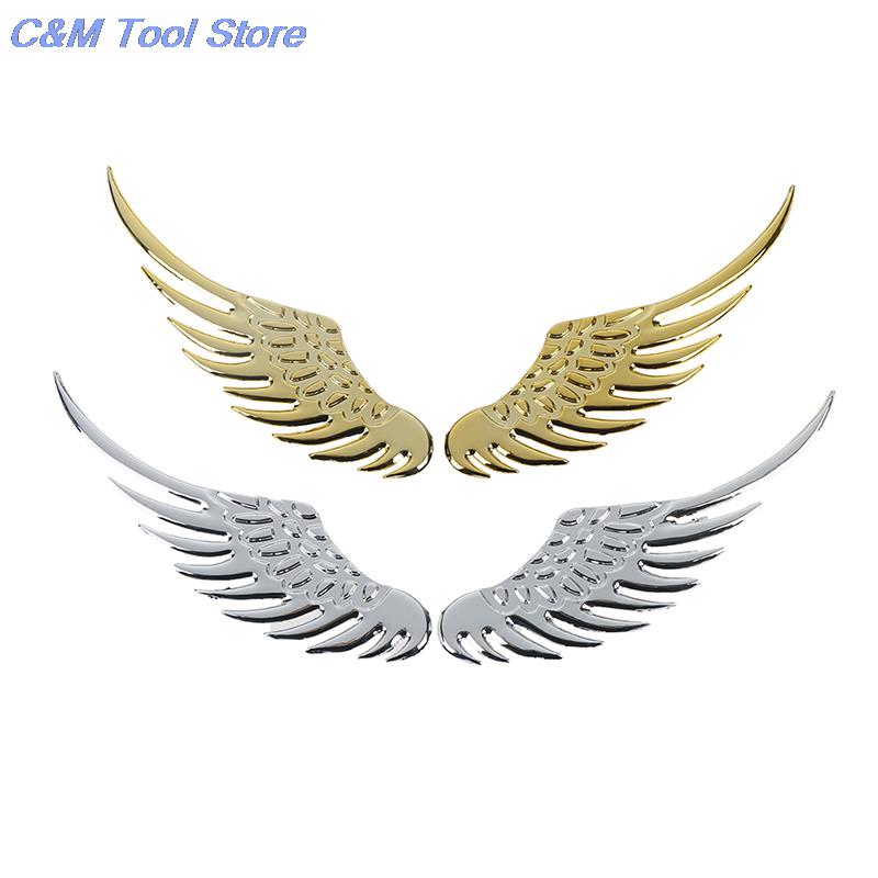 1 пара Автомобильные мотоциклетные аксессуары Золотой/серебристый Автостайлинг Модные металлические наклейки 3D Крылья Автомобильная наклейка