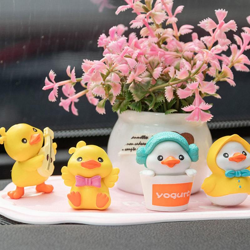 6 шт., украшение в форме маленьких уток для автомобиля, мини-маленькая утка, украшение для приборной панели автомобиля, мультяшная смоляная маленькая желтая утка, декор для интерьера автомобиля