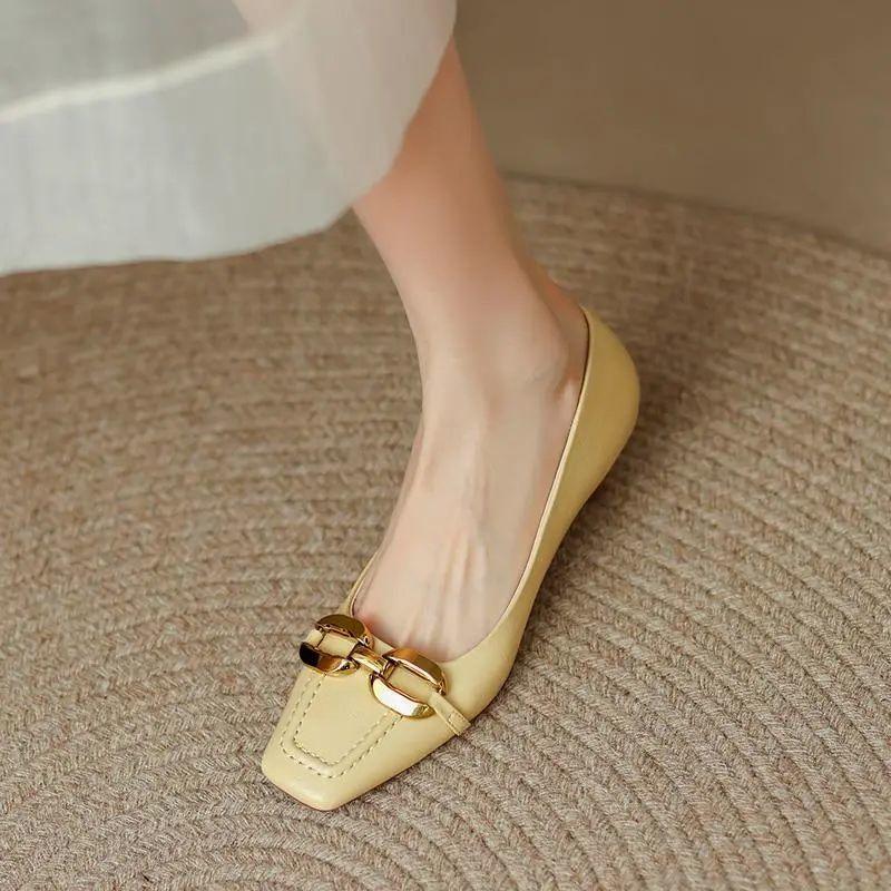 Женская летняя обувь с квадратным носком для женщин 2024 года, мокасины на массивном каблуке, желтые, низкие, элегантные, повседневные, 39, шикарные, AEL