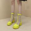 Ботильоны Сандалии Обувь на каблуке Женские ботильоны Белые сетчатые короткие туфли для женщин Очень высокие каблуки Зима 2024 Ботинки Модные Pu