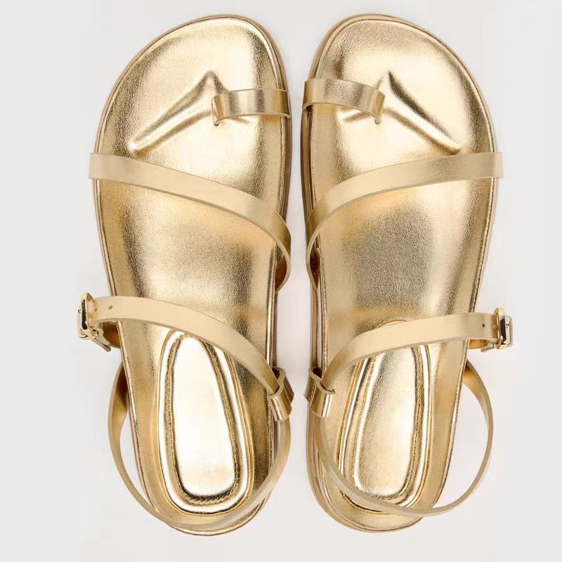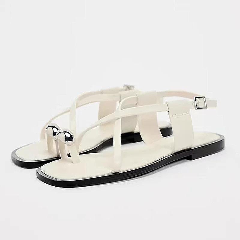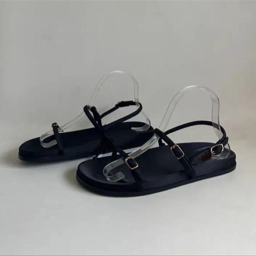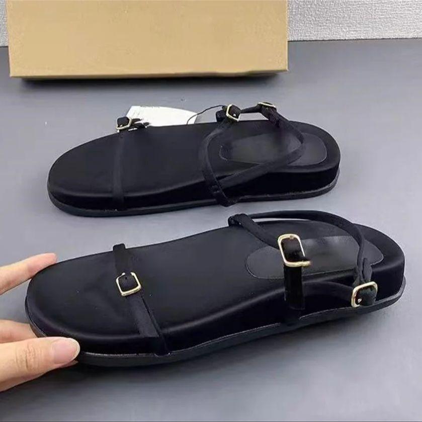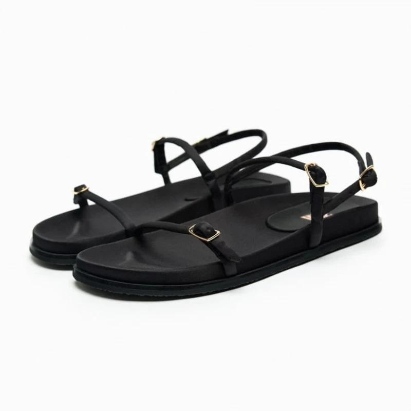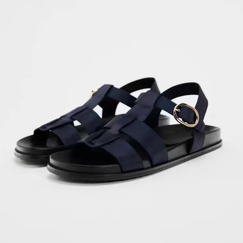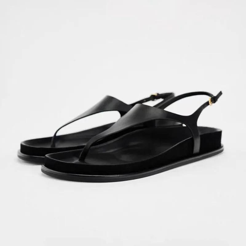 ZA Женские черные сандалии на плоской подошве 2024 года, летние новые пляжные сандалии, женские повседневные тапочки для улицы, женские элегантные сандалии с пряжками на ремешках