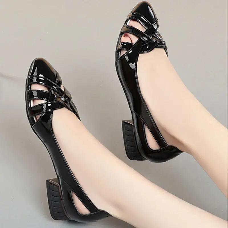 Сандалии женские с острым носком, женская обувь для активного отдыха, синие, лето 2024 г., закрытые, со средним каблуком, кожаные, шикарные и элегантные