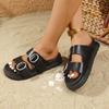 Обувь для женщин 2024 года, модные базовые женские тапочки, повседневные тапочки на платформе, женские тапочки с пряжкой на плоской подошве с открытым носком, женская обувь для отдыха на природе