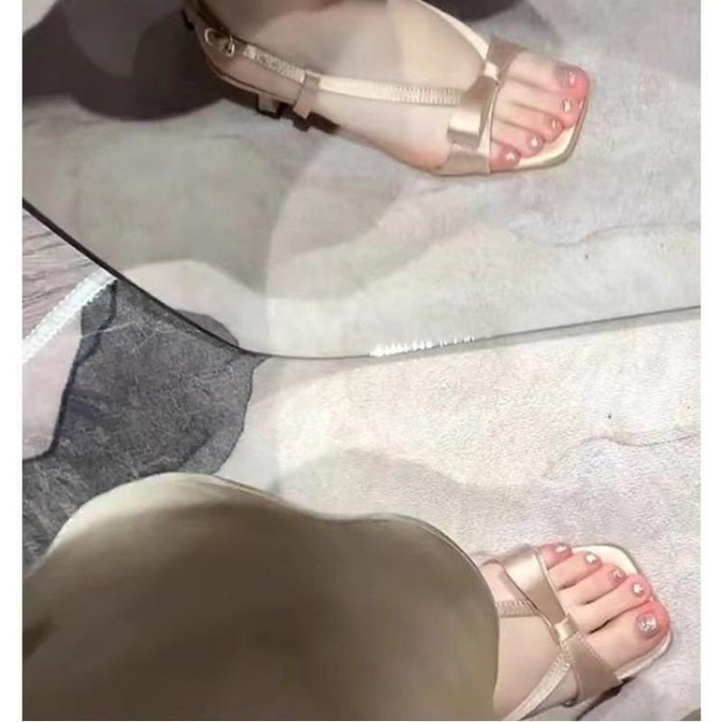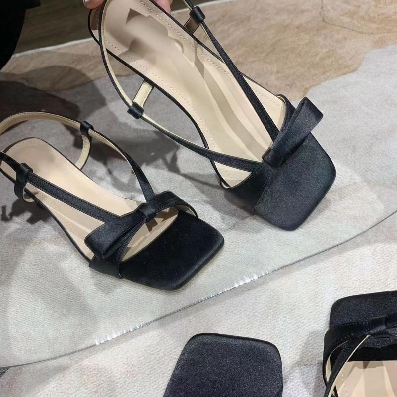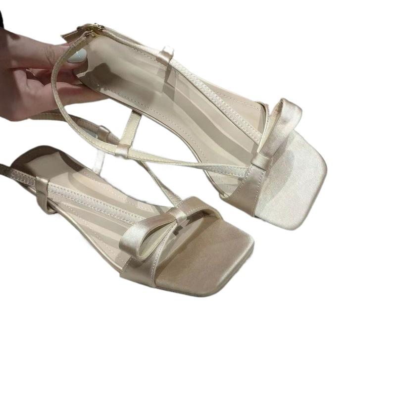 2024 Высокое Качество Женская Обувь Летняя Мода Открытый Носок Однотонный Бант Повседневные Сандалии на Высоком Каблуке Женские с Пряжкой на Одной Линии