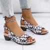 Горячая Распродажа Летняя Женская Обувь Высокого Качества Модные Женские Сандалии На Одной Пуговице С Принтом Открытый Носок Толстый Каблук Римские Туфли