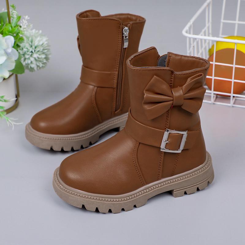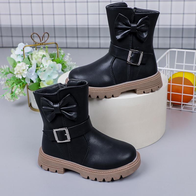 2024 Ботинки для девочек с бантом, детская модная пряжка, крутые однотонные туфли для маленьких девочек, детские повседневные ботинки, универсальные, весенние, новые, простые
