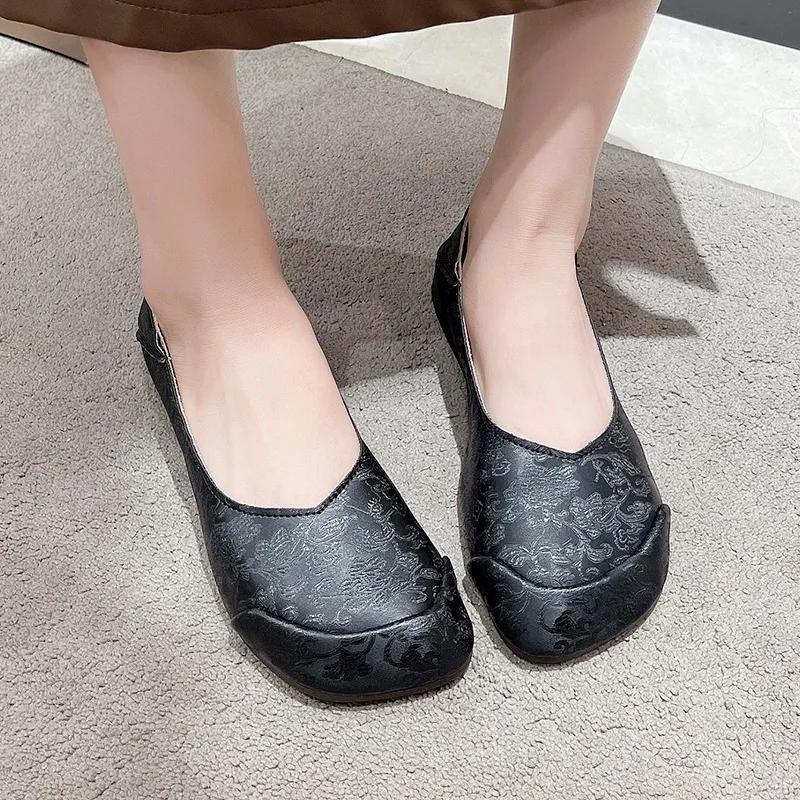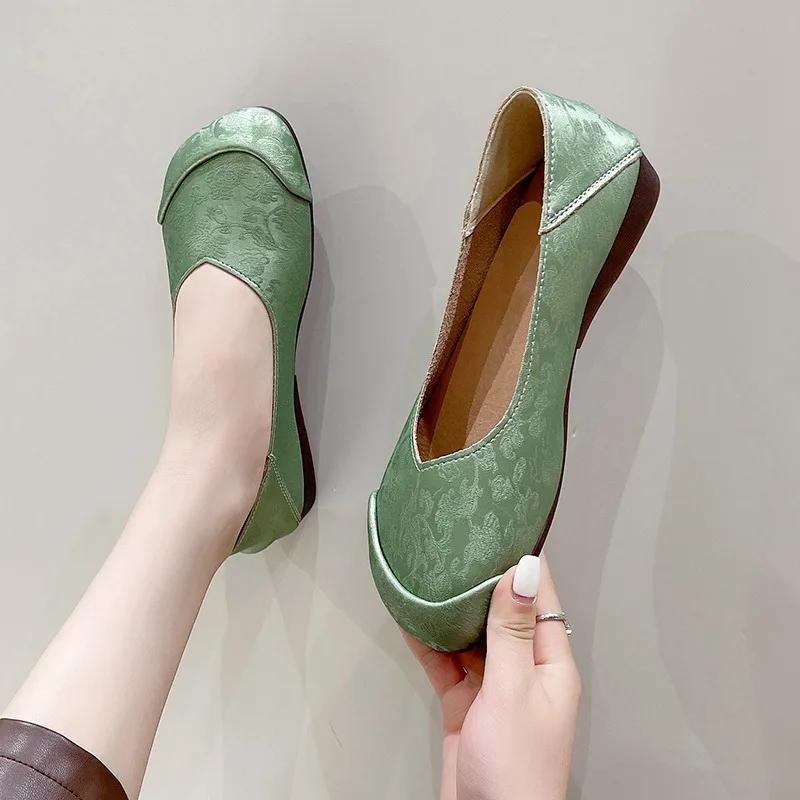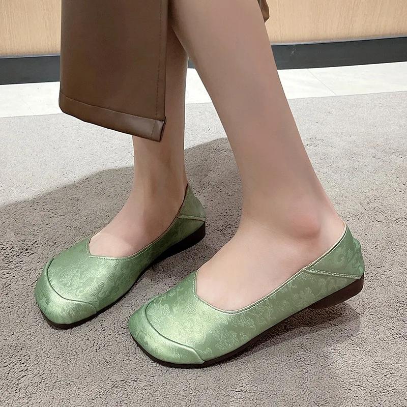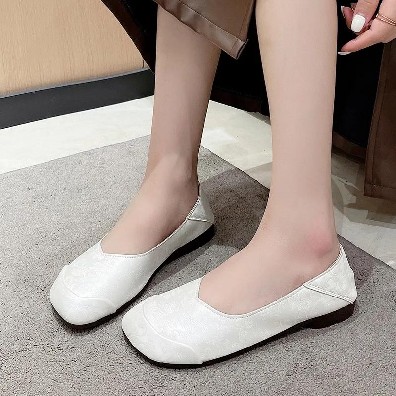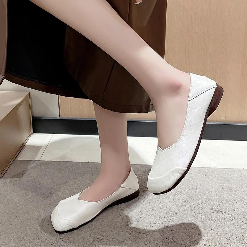 Стиль 2024 года. Модные и удобные женские туфли на плоской подошве без застежек с квадратным носком. Универсальная женская обувь на весну и осень.