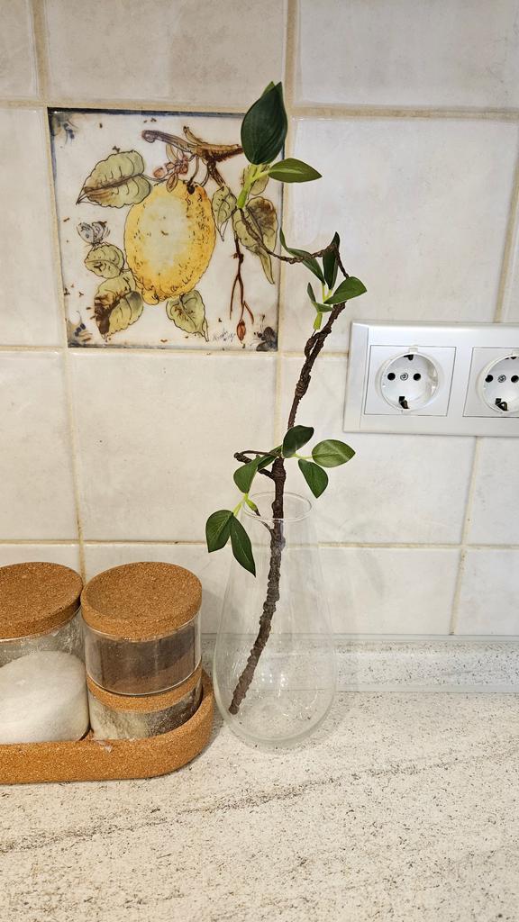 Какая-то корявая некрасивая ветка пришла, но листики нормальные, раздербанила по разным вазочкам