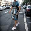 Летняя линия сращивания 3D принт футболки шорты комплекты мужские спортивные костюмы свободный короткий рукав футболка брюки комплект мужские костюмы одежда