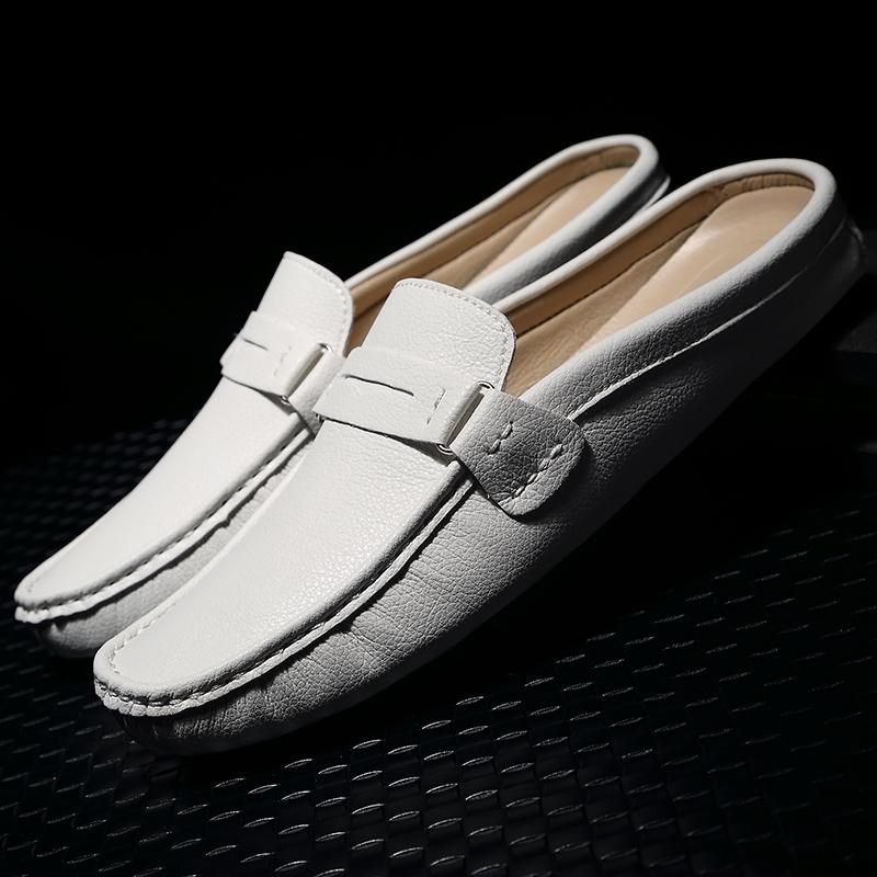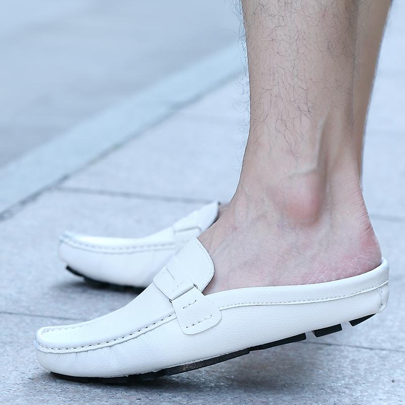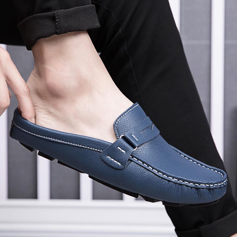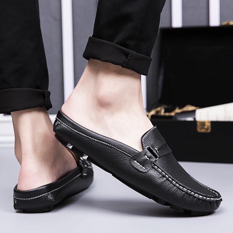 Модные мужские тапочки Модные кожаные мокасины Мокасины Уличная нескользящая повседневная обувь для вождения Мужские мюли Шлепанцы Удобные пляжные сандалии