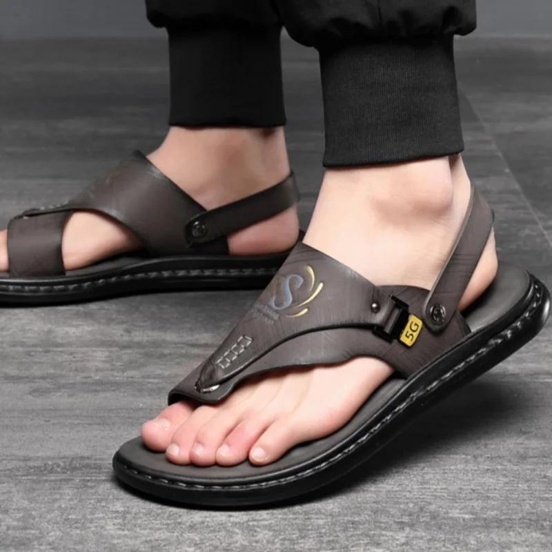 Модные высококачественные мужские сандалии Роскошные кожаные повседневные сандалии для улицы Нескользящие пляжные туфли для мужчин Летние сандалии Вьетнамки с перемычкой для пальца