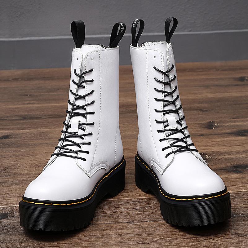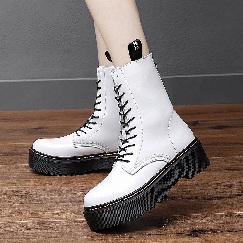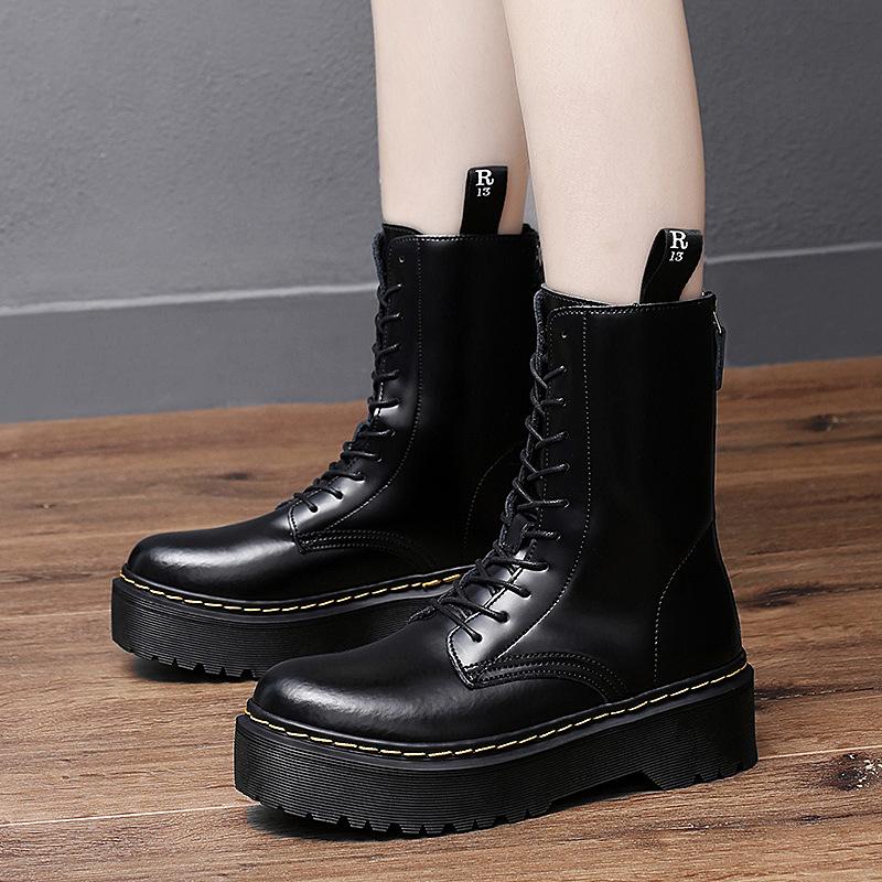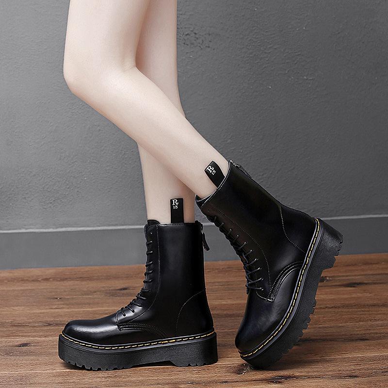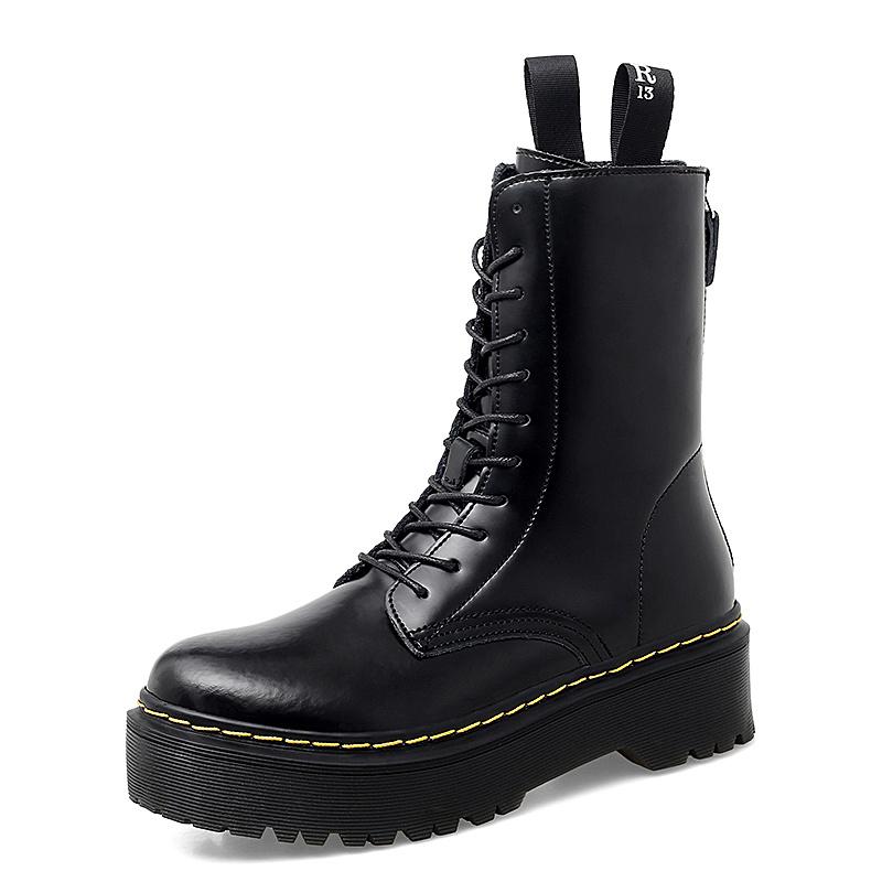 Модные классические черные ботинки на платформе, женские высококачественные повседневные кожаные ботинки, женские модные высокие зимние ботинки на молнии для женщин botas mujer