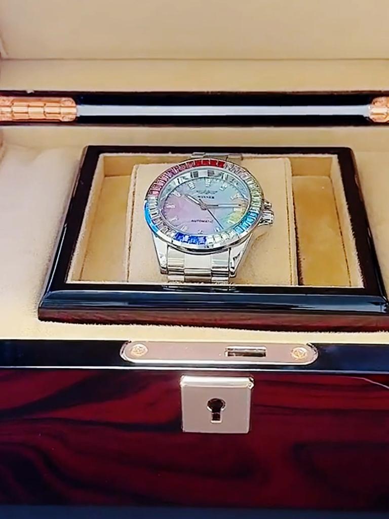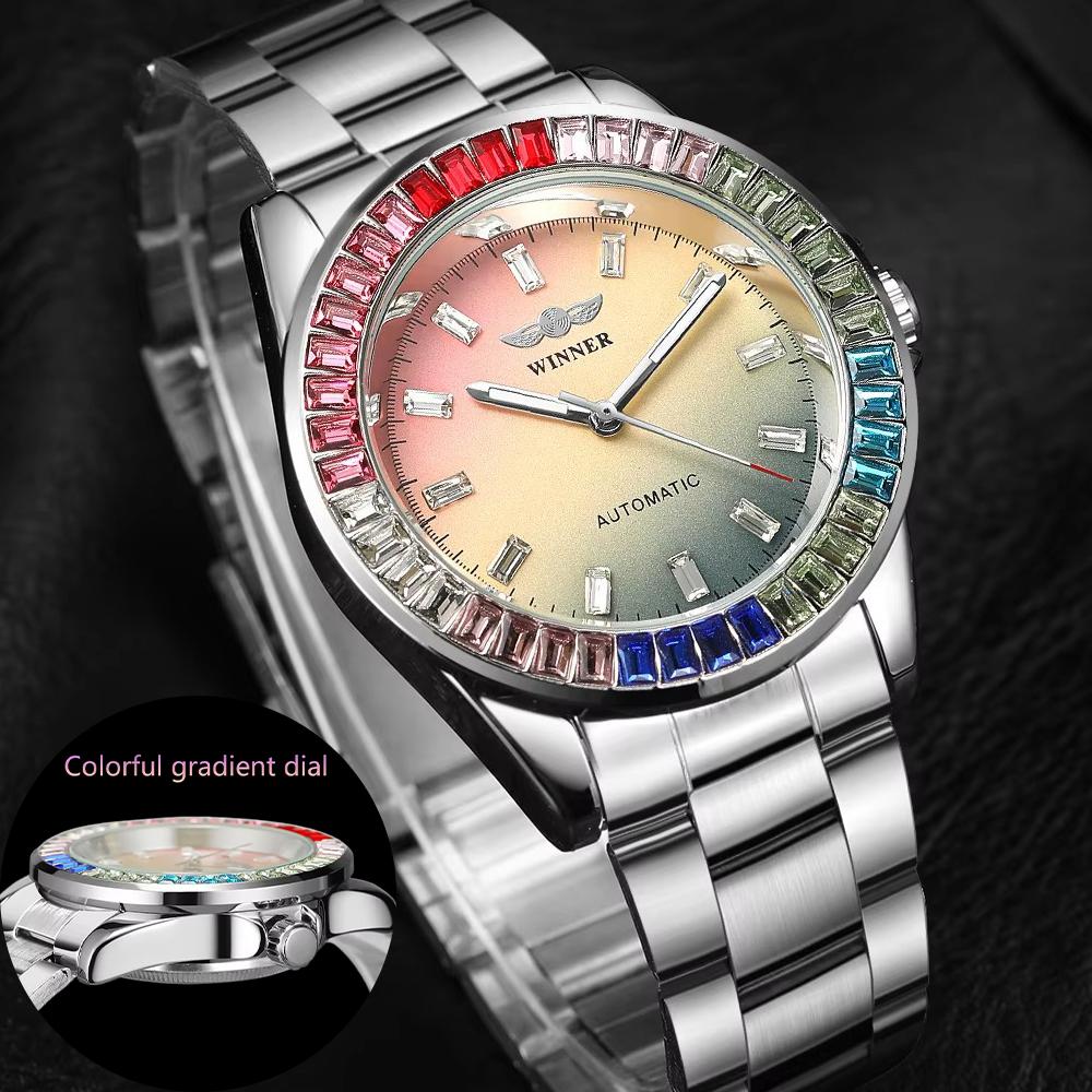 Модные цветные бриллиантовые часы для мужчин, подарки, автоматические механические часы, наручные часы со стальным ремешком, розовый циферблат с принтом тай-дай