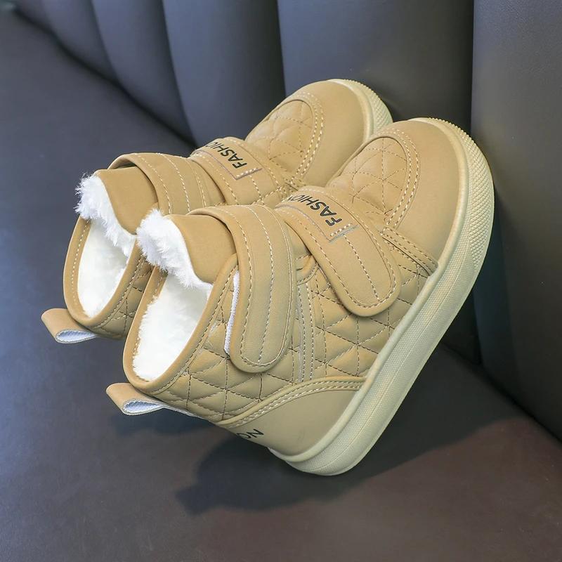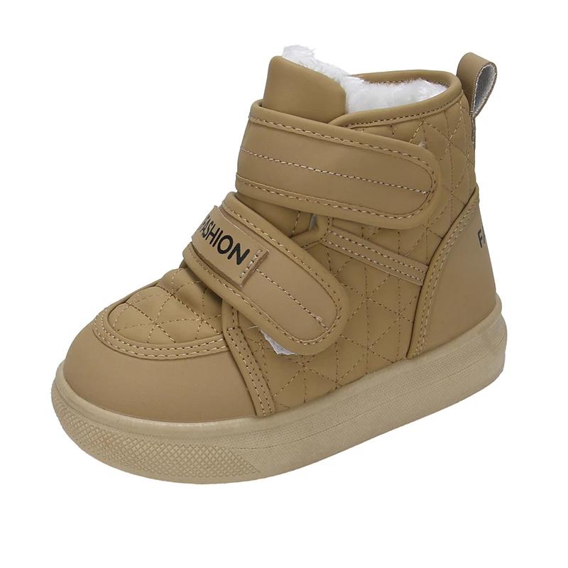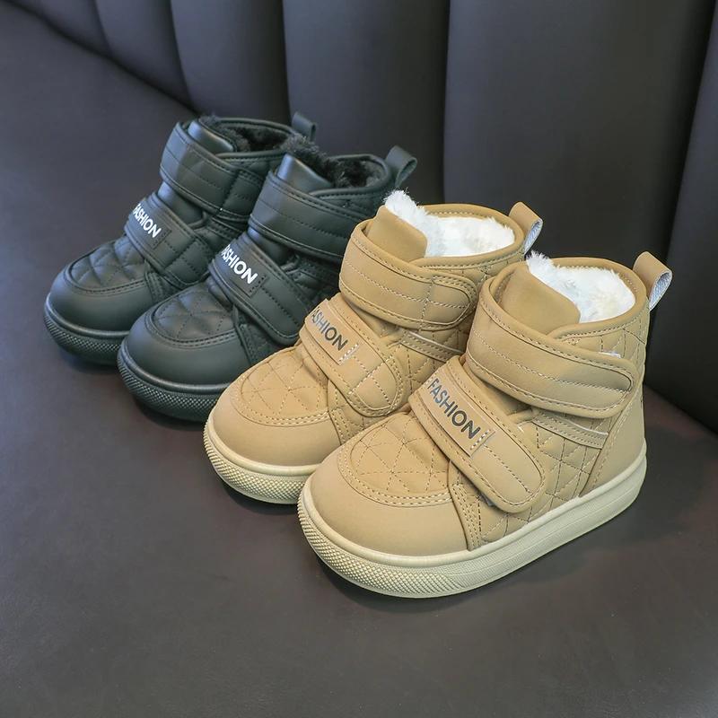 2024 Детские короткие ботинки для девочек и мальчиков, зимние новые модные корейские ботинки с мягкой подошвой, нескользящие, универсальные, сохраняющие тепло
