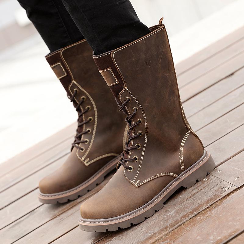 Кожаные ковбойские сапоги Ботинки из коровьей кожи Высокие монгольские сапоги для верховой езды Уличные локомотивные сапоги Ботинки на шнуровке Ботинки Martin в стиле ретро