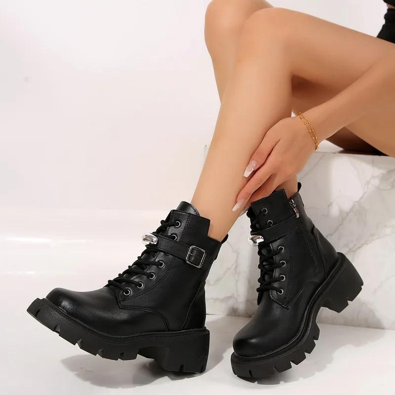 Женская обувь 2024 Горячие продажи Ботинки женские на молнии Осень Круглый носок Однотонные ботинки телесного цвета Толстая подошва Водонепроницаемые Модные ботинки