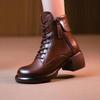 Женские сапоги Новые ретро сапоги с боковой молнией Женская обувь Однотонные ботильоны на толстом каблуке Туфли на платформе