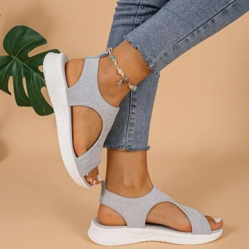 2024 Новые популярные женские туфли, женские сандалии без застежек, летние повседневные сандалии, плоские каблуки, круглый носок, сандалии с открытой пяткой