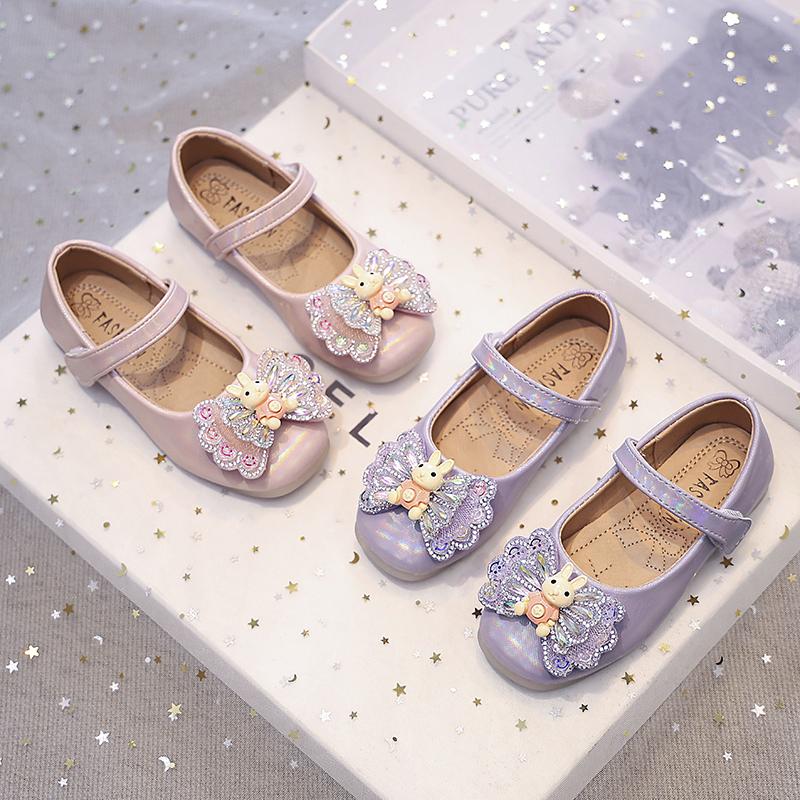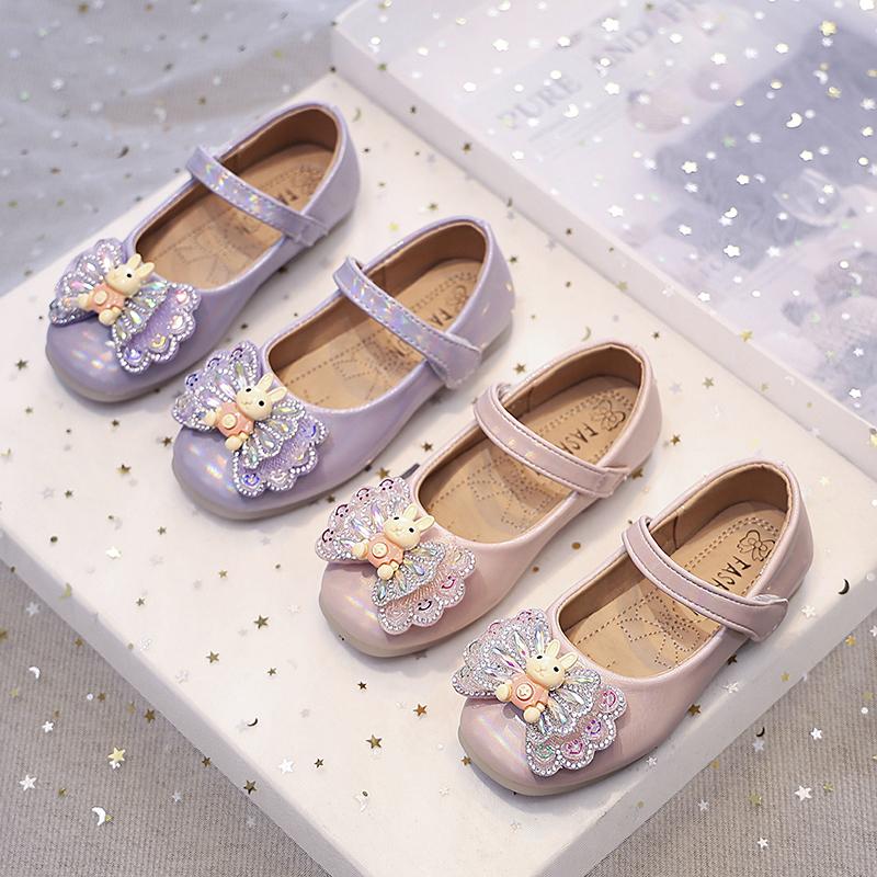 Обувь из кожи для девочек на вечеринку, свадьбу, модные детские туфли для выступлений с бантом, детские туфли принцессы с рисунком кролика из мультфильма