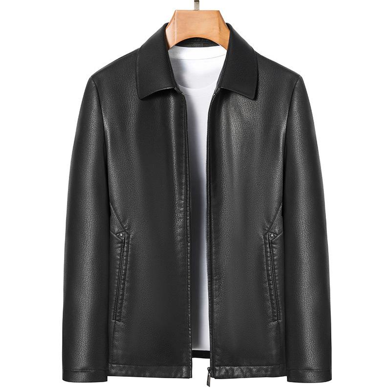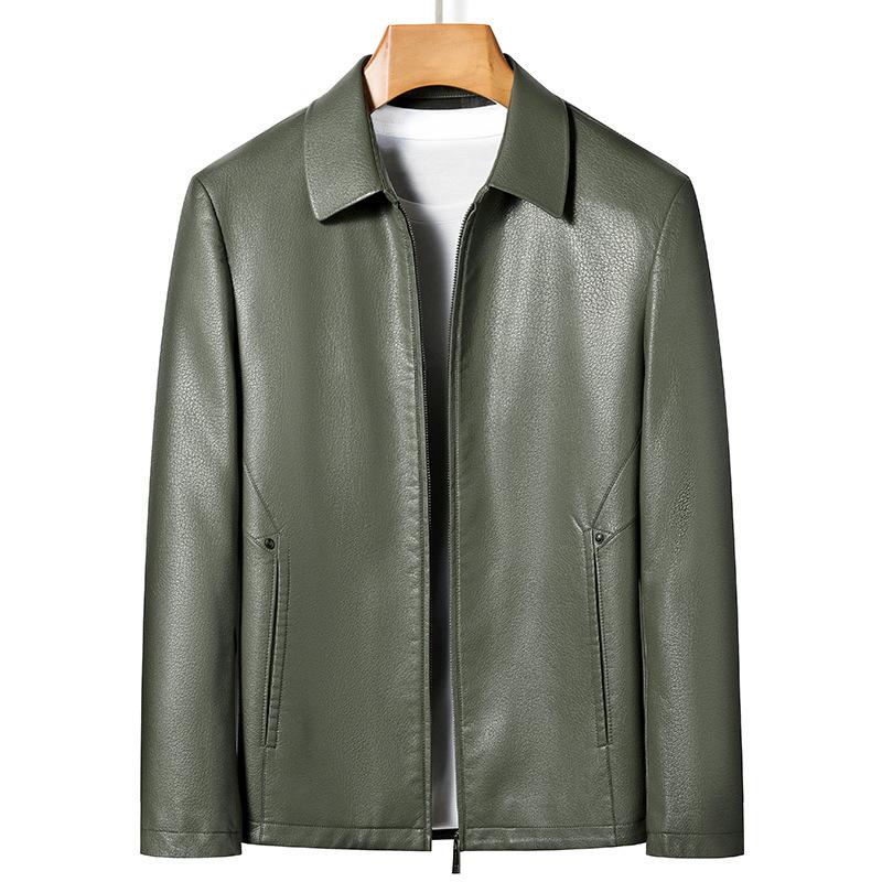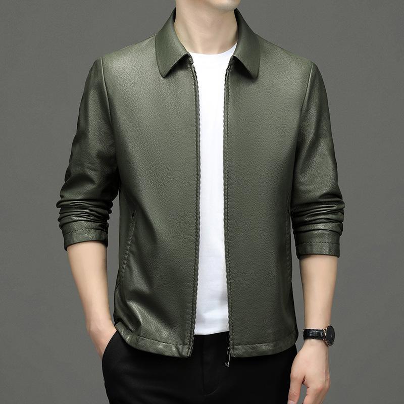Мужская кожаная куртка весна-осень Простая куртка из искусственной кожи с лацканами Повседневная универсальная ветрозащитная кожаная куртка Мужская верхняя часть