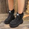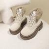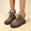 2024 Зимние Горячие Продажи Высокое Качество Женская Обувь Однотонная Круглый Носок Высокий Каблук Шнуровка Короткое Голенище Женские Модные Ботинки