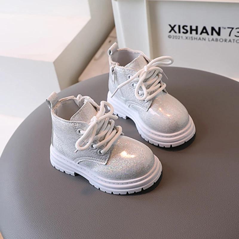 Ботильоны для девочек, модные, блестящие, зимние, детские, короткие, на толстой подошве, осенне-зимние, универсальные, детские, нескользящие, с боковой молнией