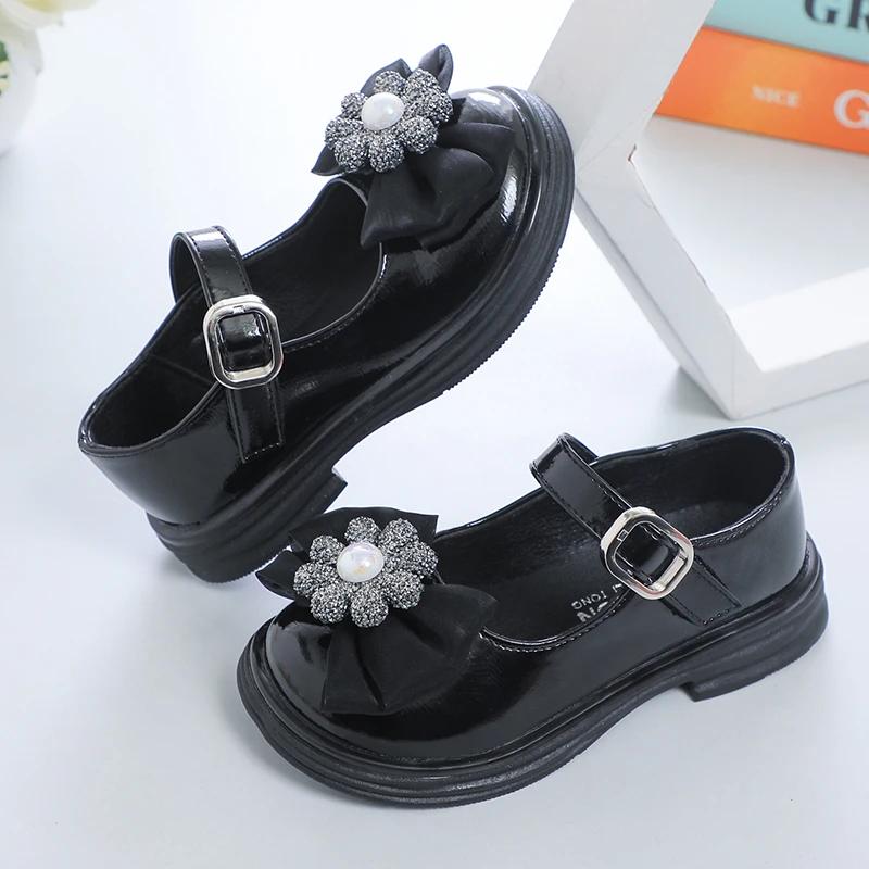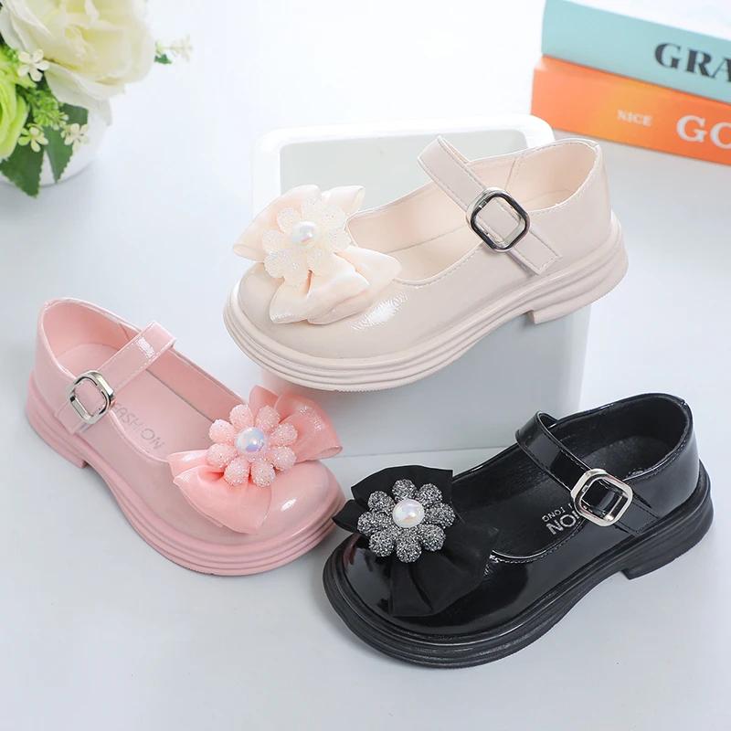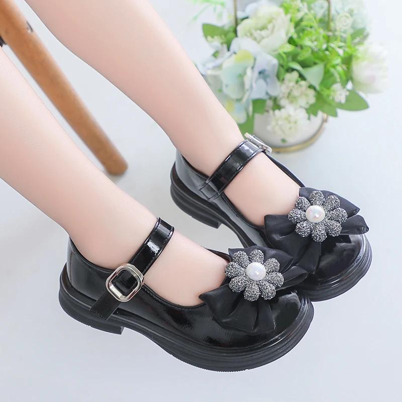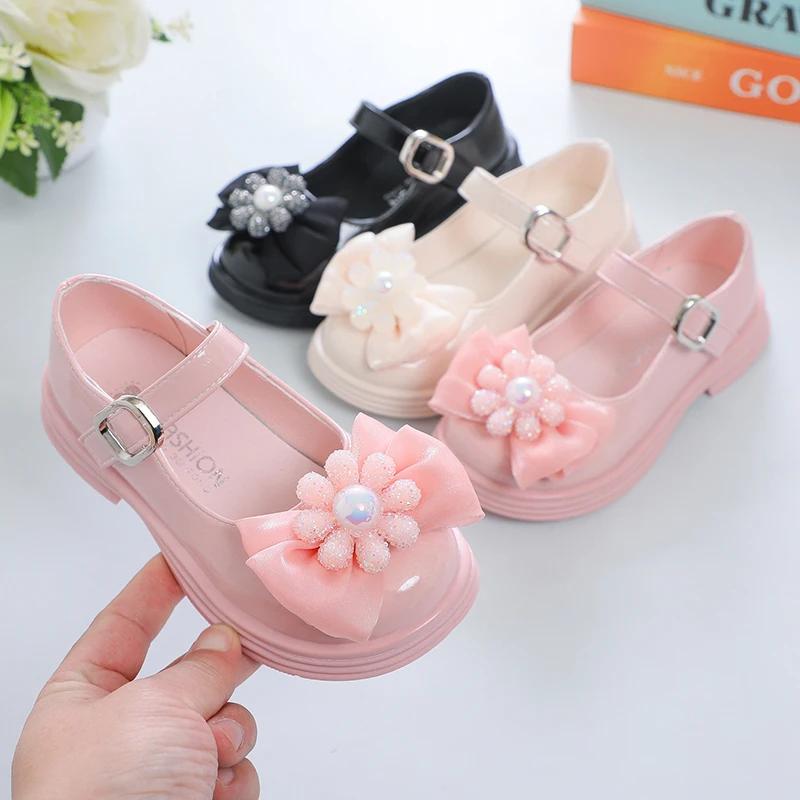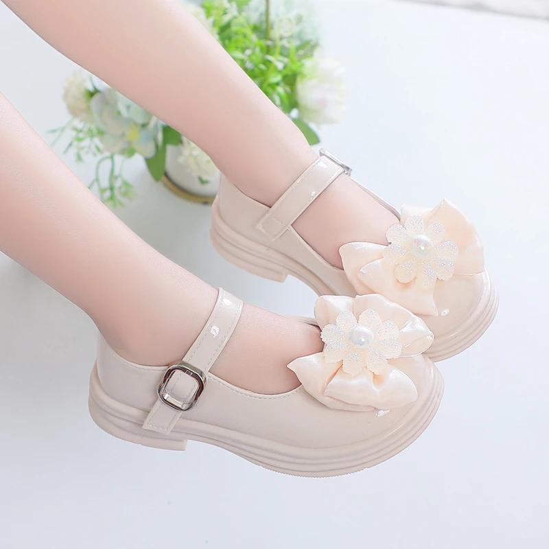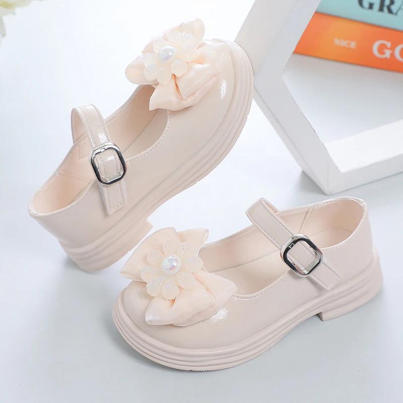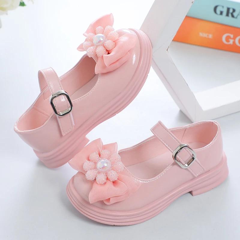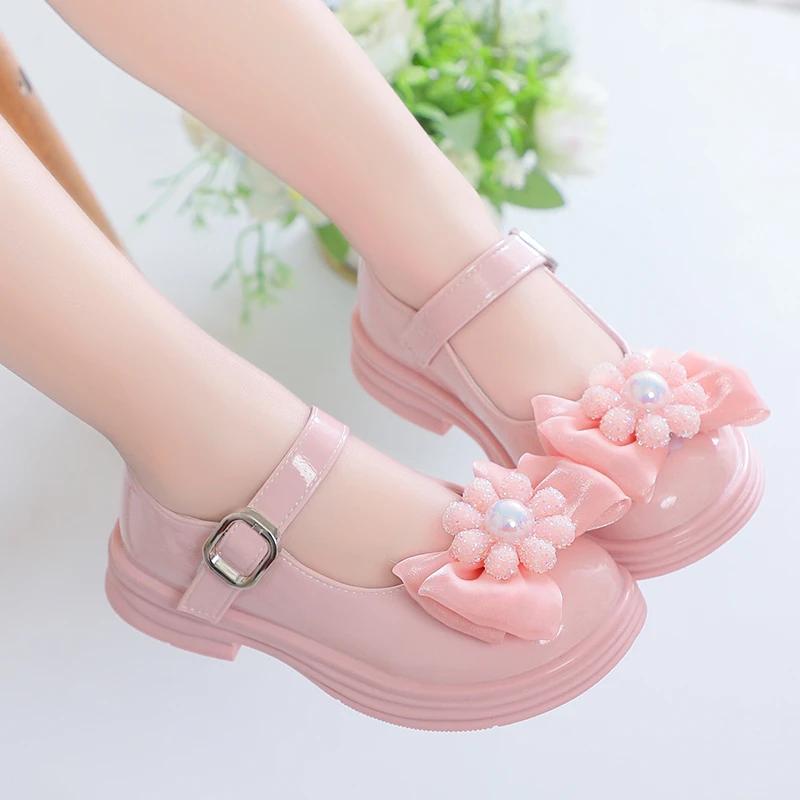 Весна и осень 2024 года, новые кожаные туфли для девочек в корейском стиле, цветочные туфли принцессы на липучке, неглубокие туфли принцессы, дышащие PU