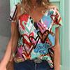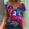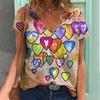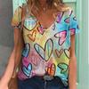 Цветной 3D-принт сердца Женская футболка в стиле ретро с коротким рукавом и V-образным вырезом Y2k Топ Harajuku Streetwear Футболка большого размера Одежда для девочек