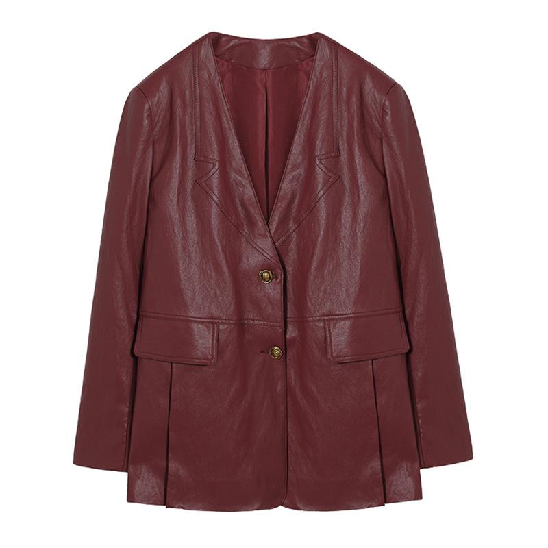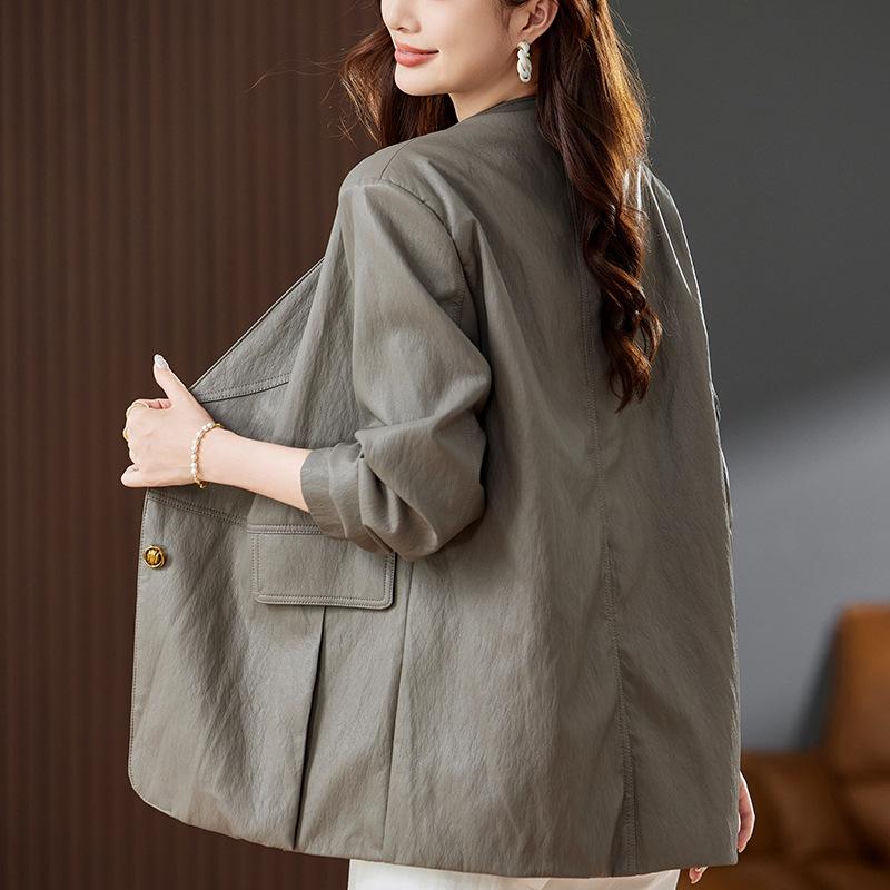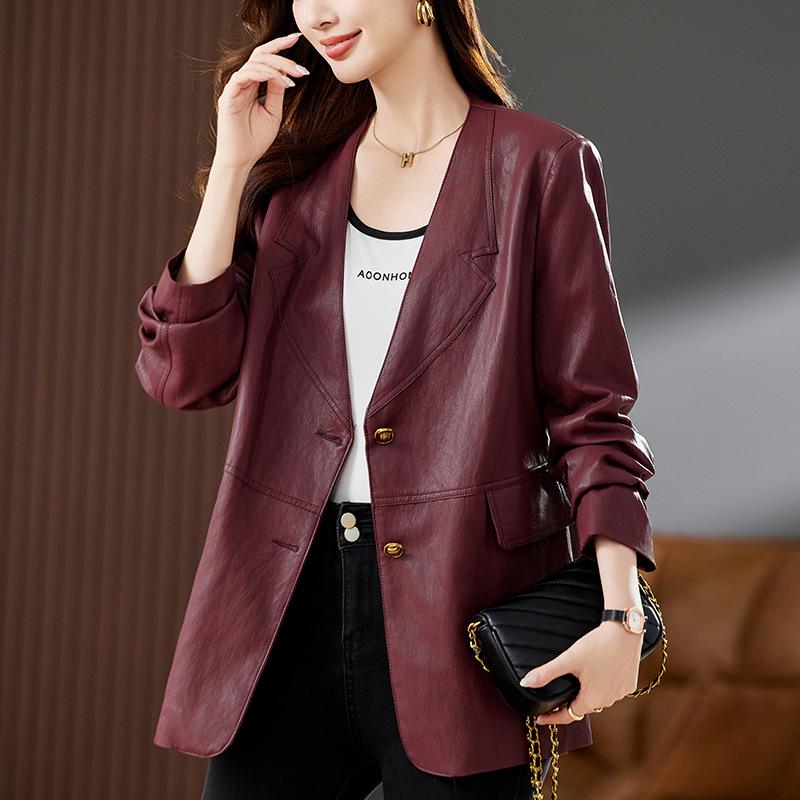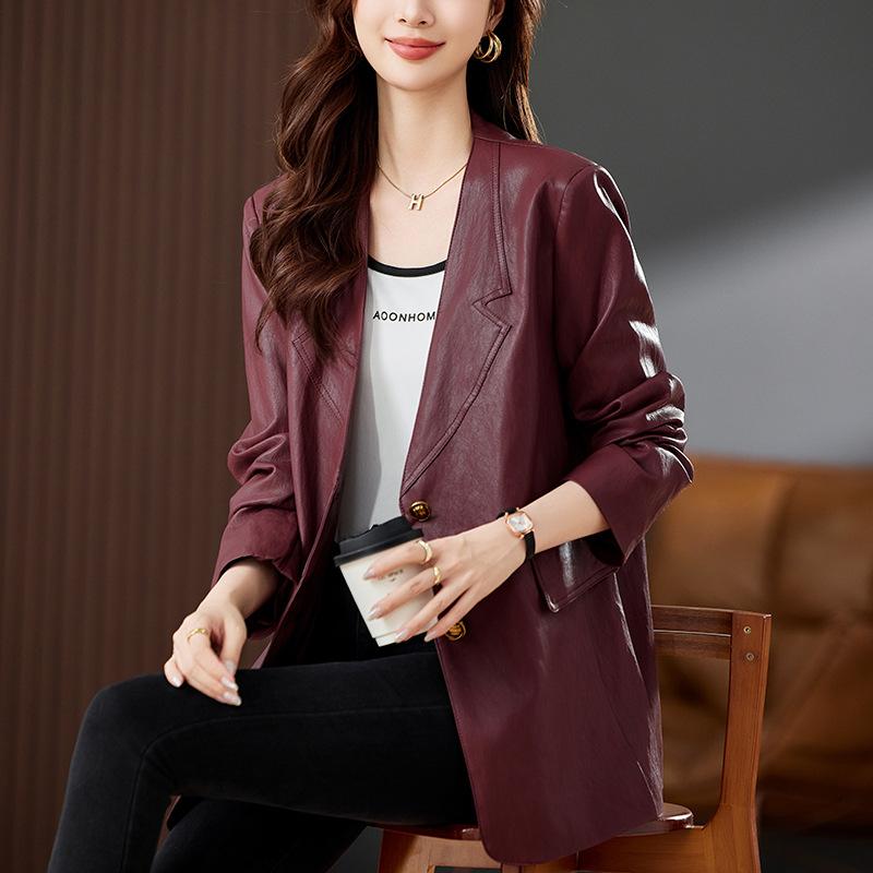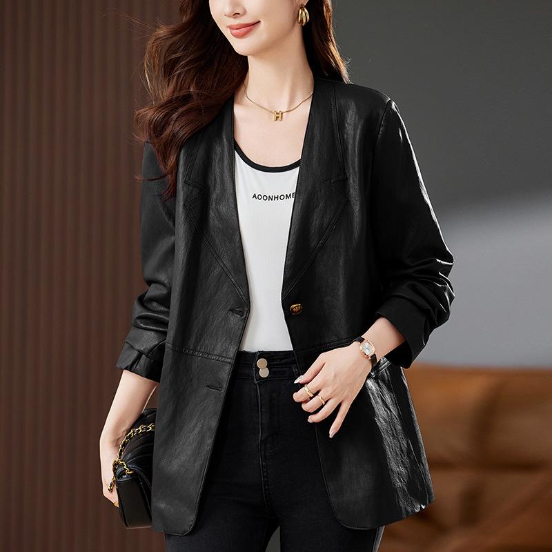 Кожаная куртка женская весна и осень новый стиль мама свободный высококачественный искусственная кожа костюм средней длины топ