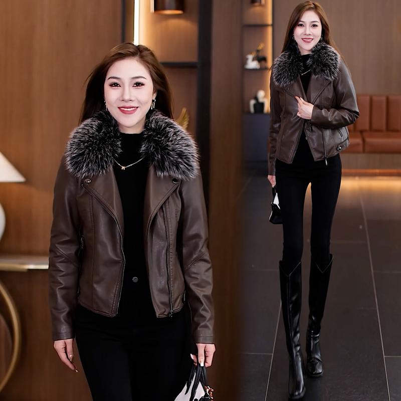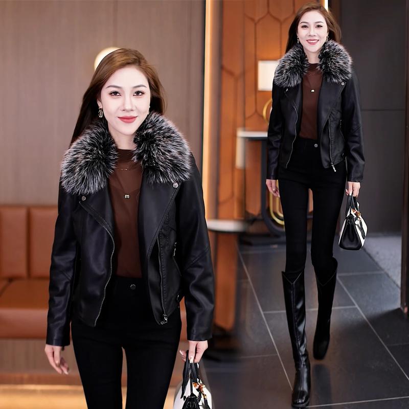 Женская зимняя куртка из утолщенной бархатной кожи нового стиля с большим меховым воротником, теплая короткая куртка из искусственной кожи