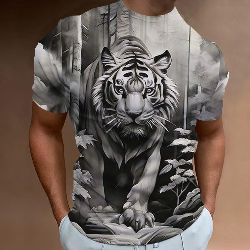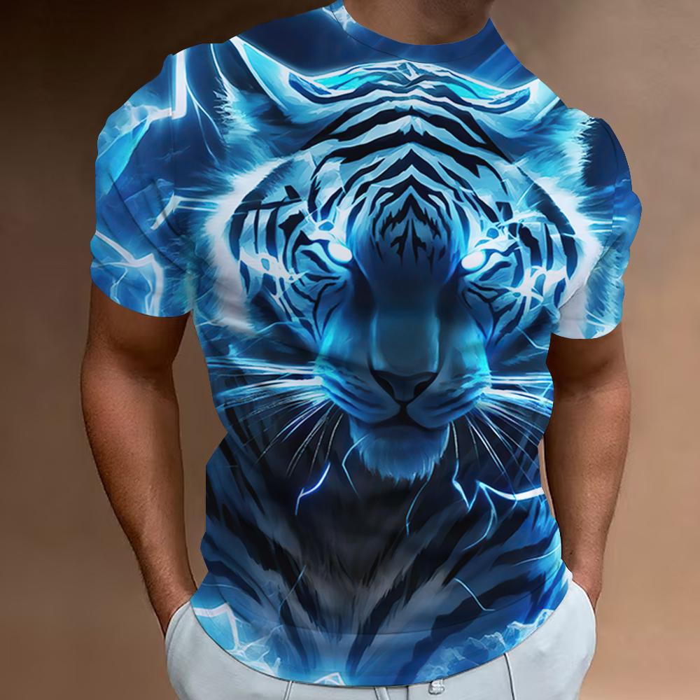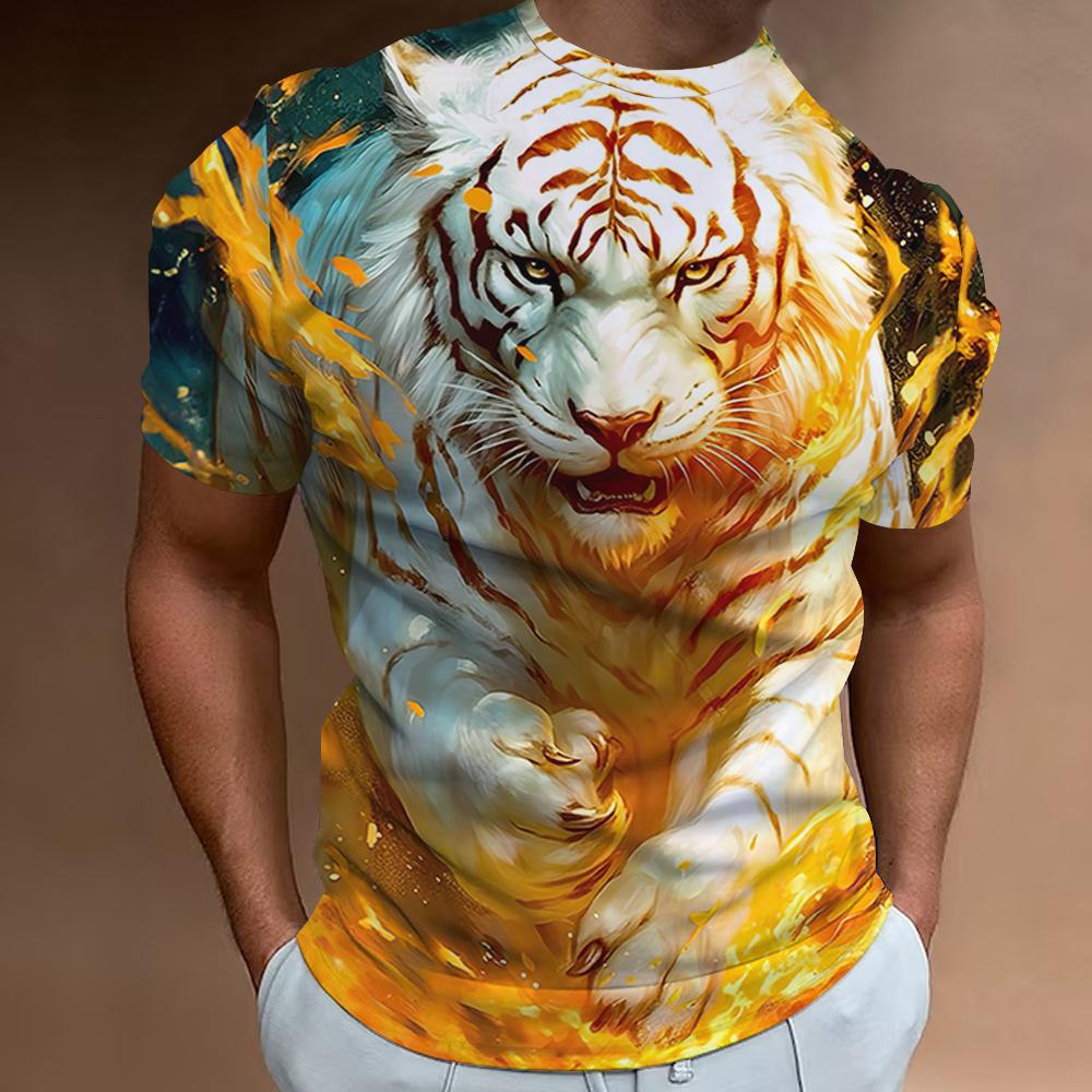 Мужская футболка с принтом свирепого тигра, футболка с коротким рукавом и 3D-принтом для мужчин, летняя свободная мужская одежда, свободные футболки в стиле ретро, топы