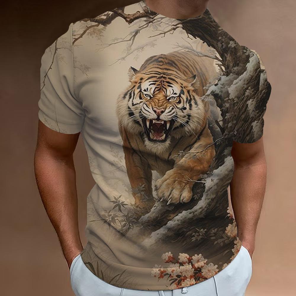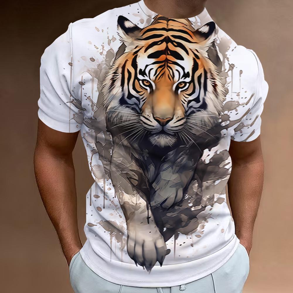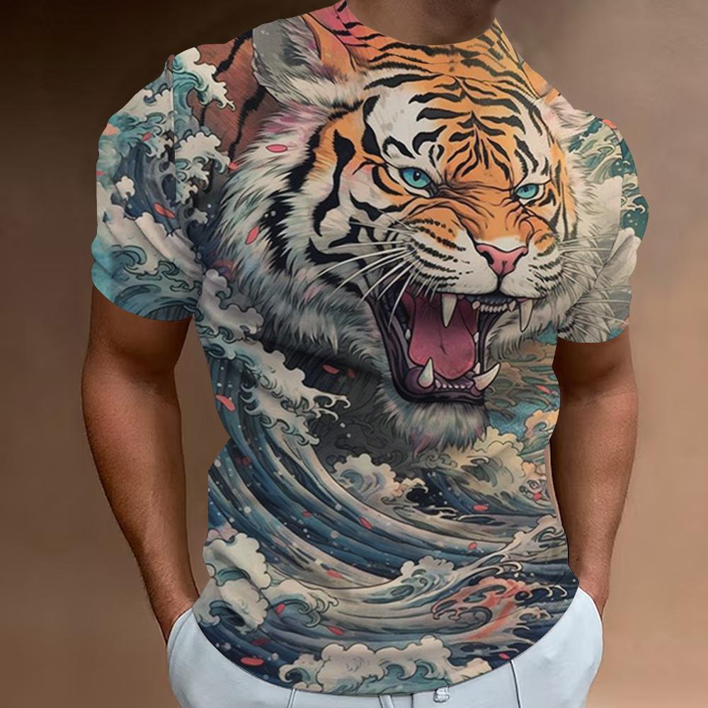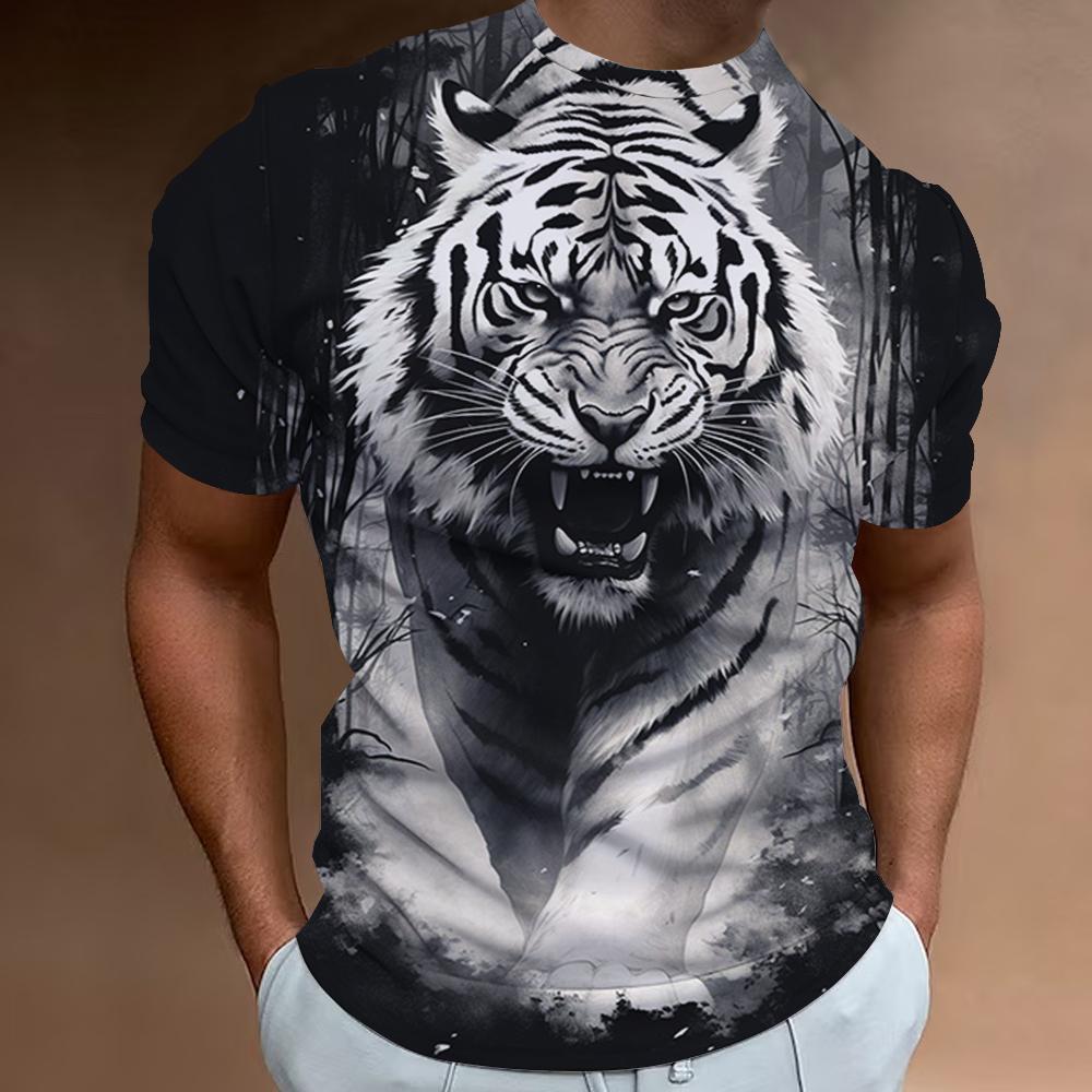Мужская футболка с принтом свирепого тигра, футболка с коротким рукавом и 3D-принтом для мужчин, летняя свободная мужская одежда, свободные футболки в стиле ретро, топы