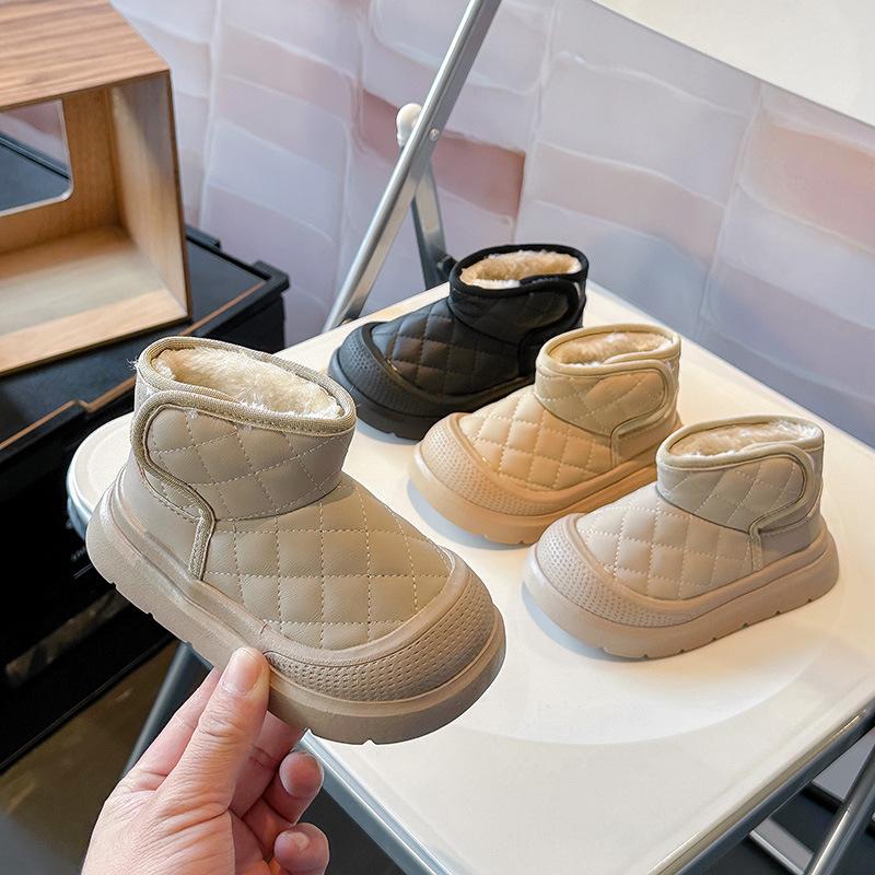 Зимние детские ботинки для мальчиков 2024 года, новые зимние ботинки для детей, модные повседневные универсальные утолщенные плюшевые ботинки для девочек из хлопка для отдыха на открытом воздухе