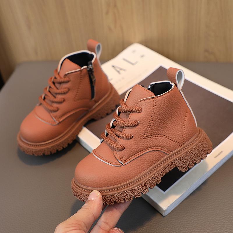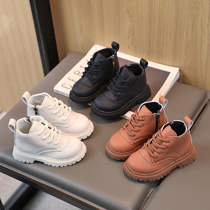 2024 Новые однотонные ботильоны для девочек Весна и лето с боковой молнией Нескользящие белые британские мальчики Классические короткие ботинки Детская обувь