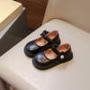 2024 Новые детские кожаные туфли с мягкой подошвой, туфли принцессы для девочек, милые шикарные детские модные повседневные черные туфли на плоской подошве, универсальные