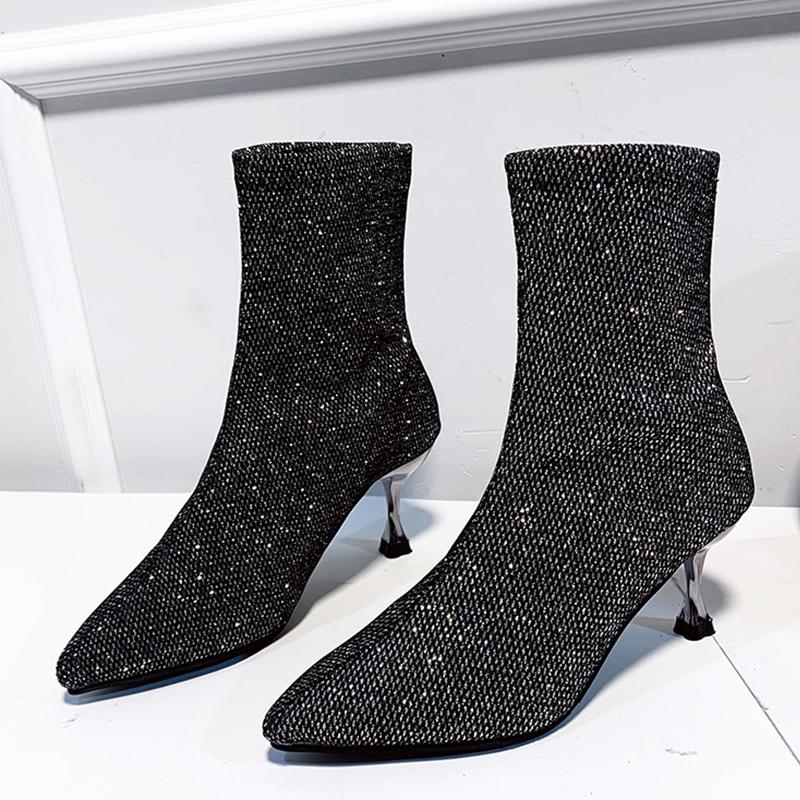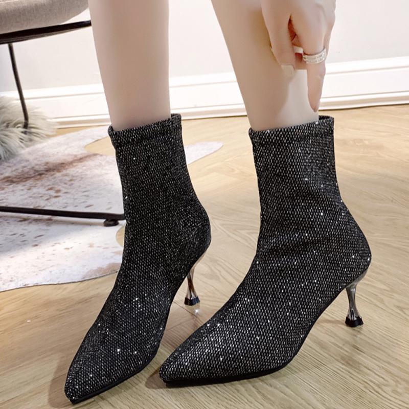 Высокие каблуки блестящие женские ботильоны с острым носком женские туфли 2024 года тренд зимние прогулочные туфли туфли-лодочки сексуальное платье женские зимние ботинки