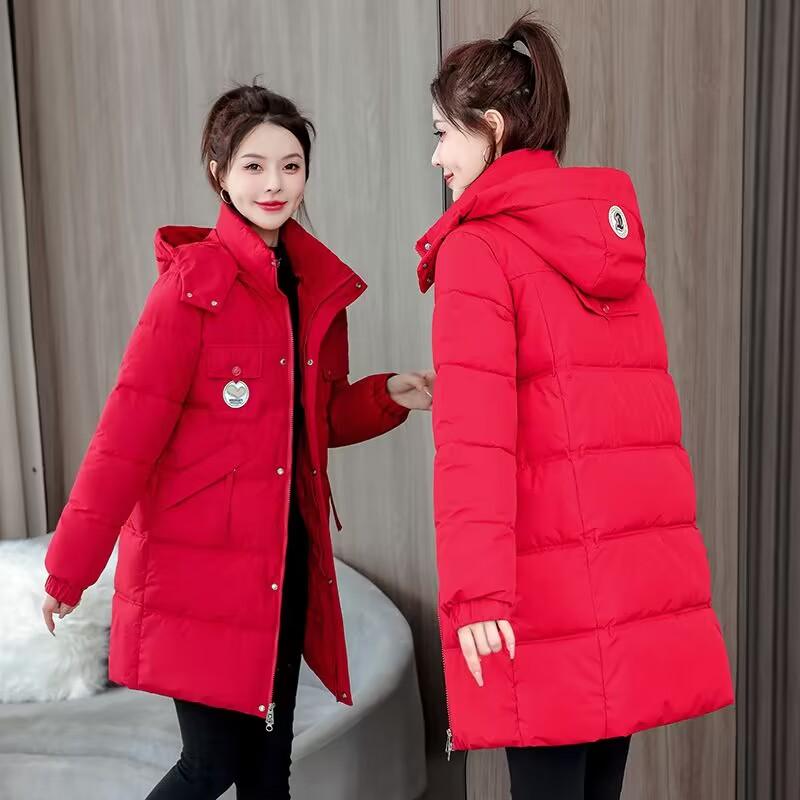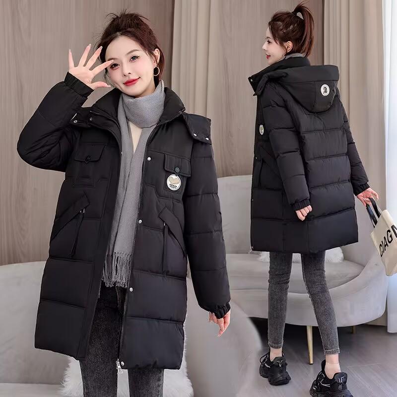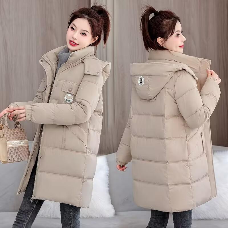 Женская осенне-зимняя куртка больших размеров с утолщением и подкладкой средней длины с капюшоном, тонкая теплая куртка на молнии