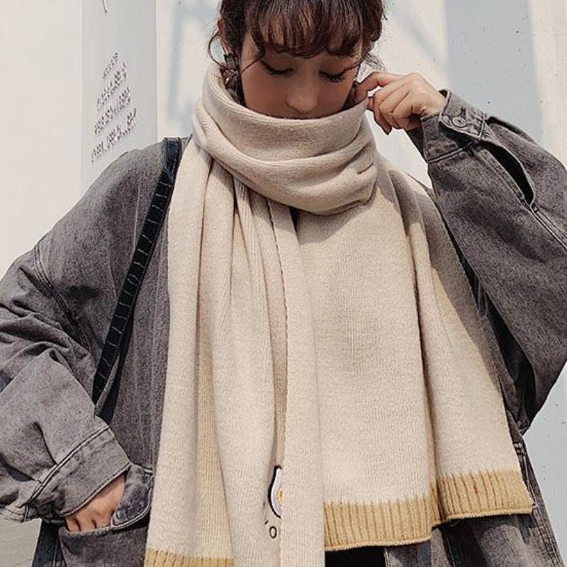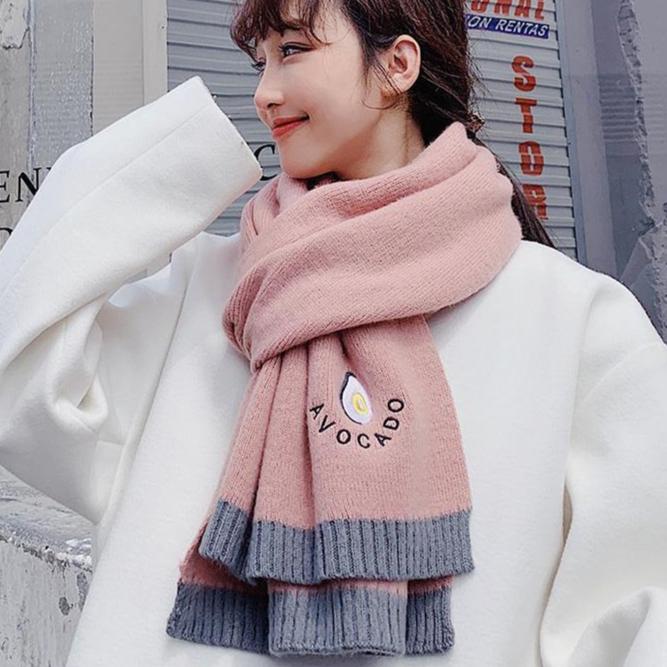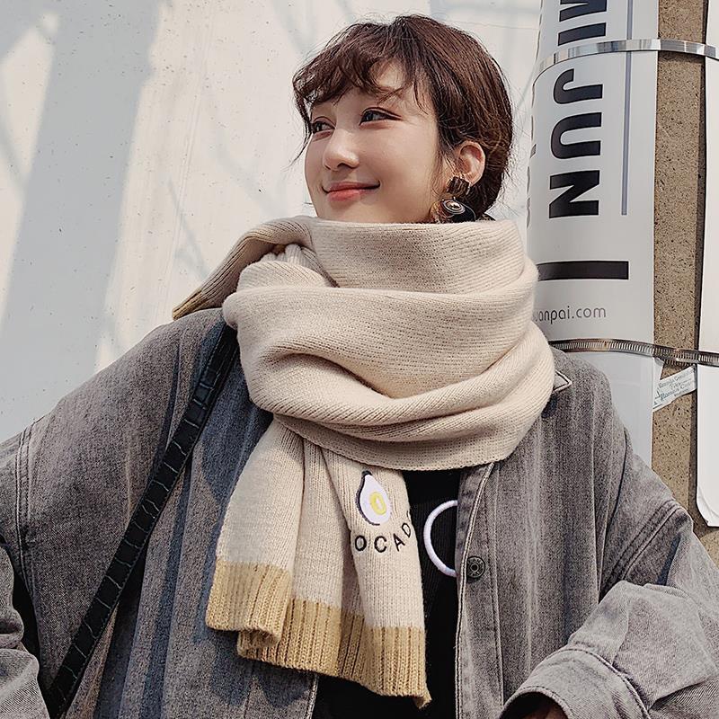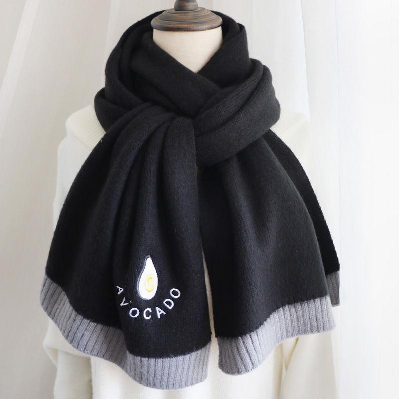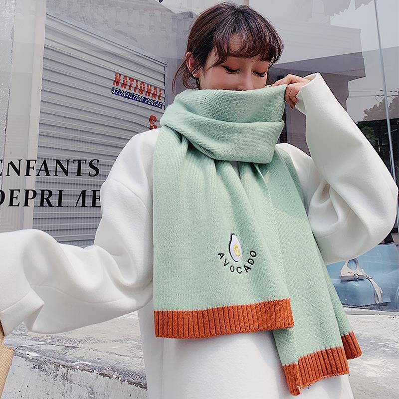 Карамельные цвета Женский шарф-обертка Шарфы Винтаж Имитация кашемира Большая шаль Милая вышивка авокадо Вязаный толстый шарф Зима