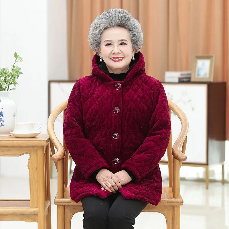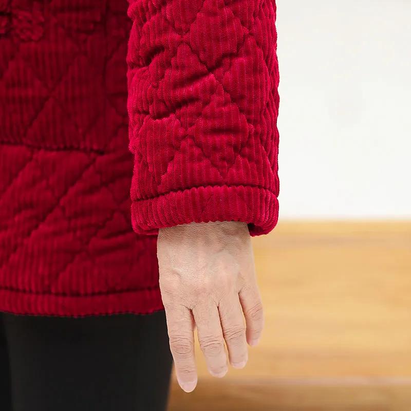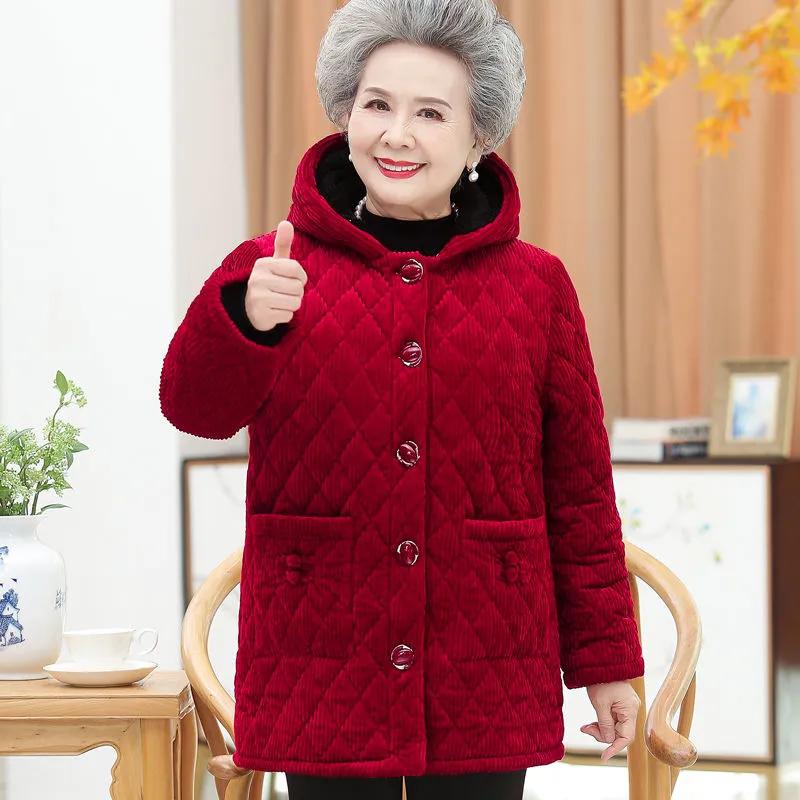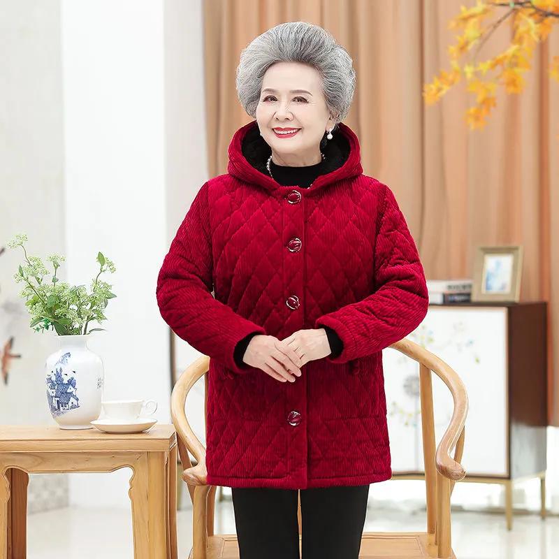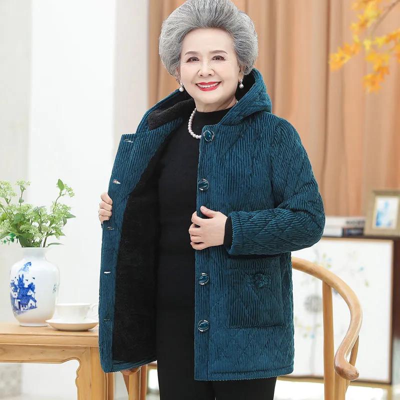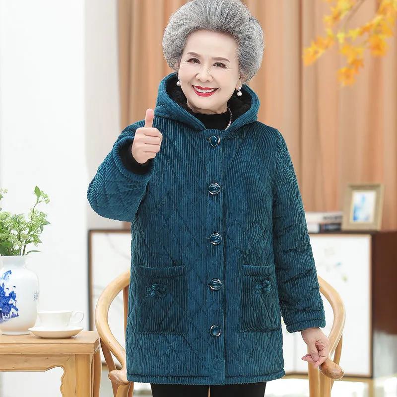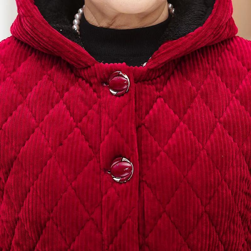 Женская зимняя утепленная вельветовая хлопковая куртка с капюшоном для мам среднего возраста, однотонные топы для темперамента