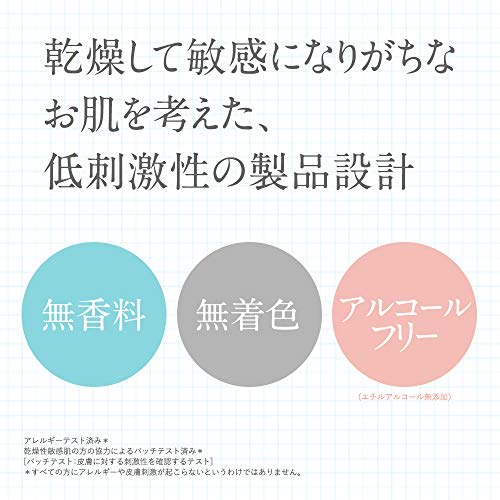 ○ Слабокислый ○ Без отдушек ○ Без красителей ○ Без спирта (без добавления этилового спирта) ○ Протестировано на аллергию (Это не гарантирует, что аллергия или раздражение кожи не возникнут у всех людей.) ○ Протестировано на коже с участием лиц с сухой, чувствительной кожей (Патч-тест: Тест для проверки раздражения кожи.)