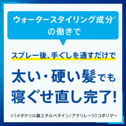 [Reset Bedhead Even on Thick, Coarse Hair] Instantly reset bedhead even on thick, coarse hair with the spray. Thanks to the water styling ingredients*1, simply run your fingers through your hair after spraying to straighten it.