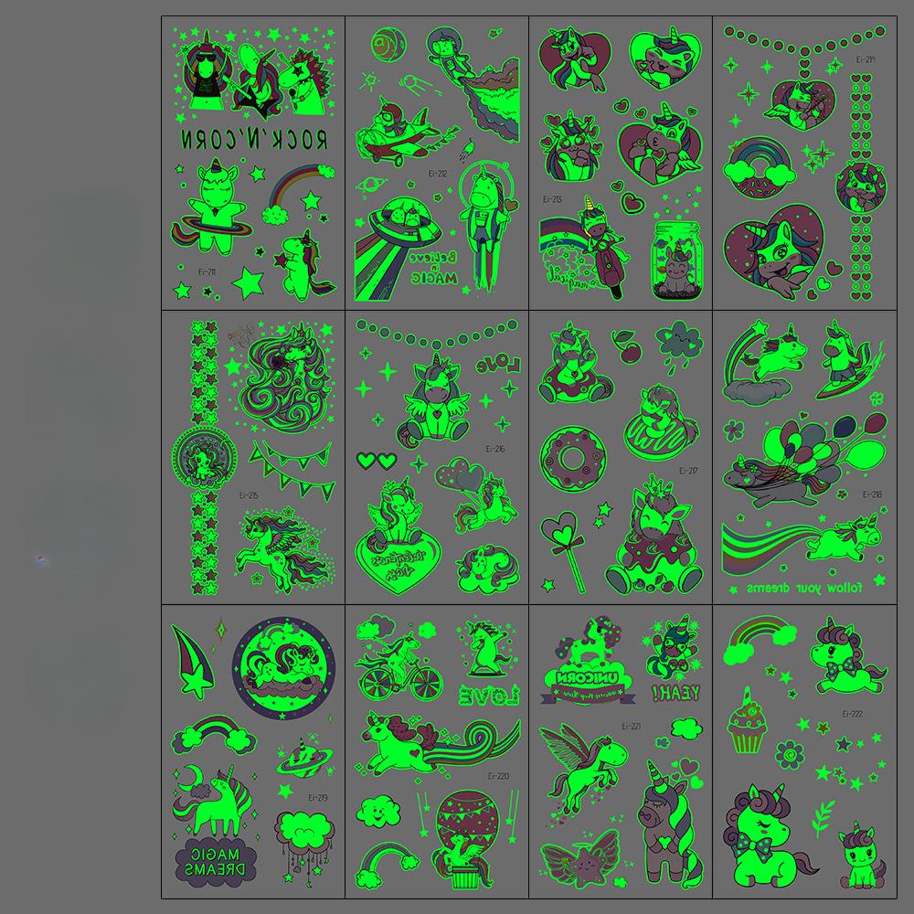 Наклейки-татуировки, светящиеся детские временные поддельные татуировки, светящаяся паста на лице, руке, ноге для детей, наклейка с русалкой для боди-арта